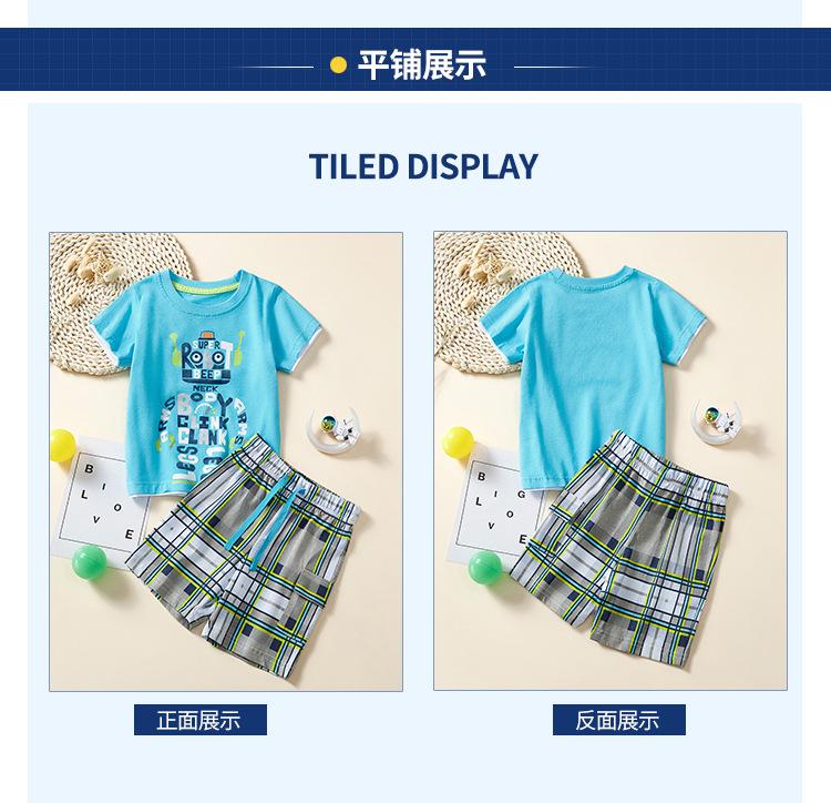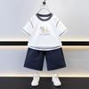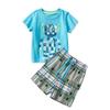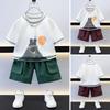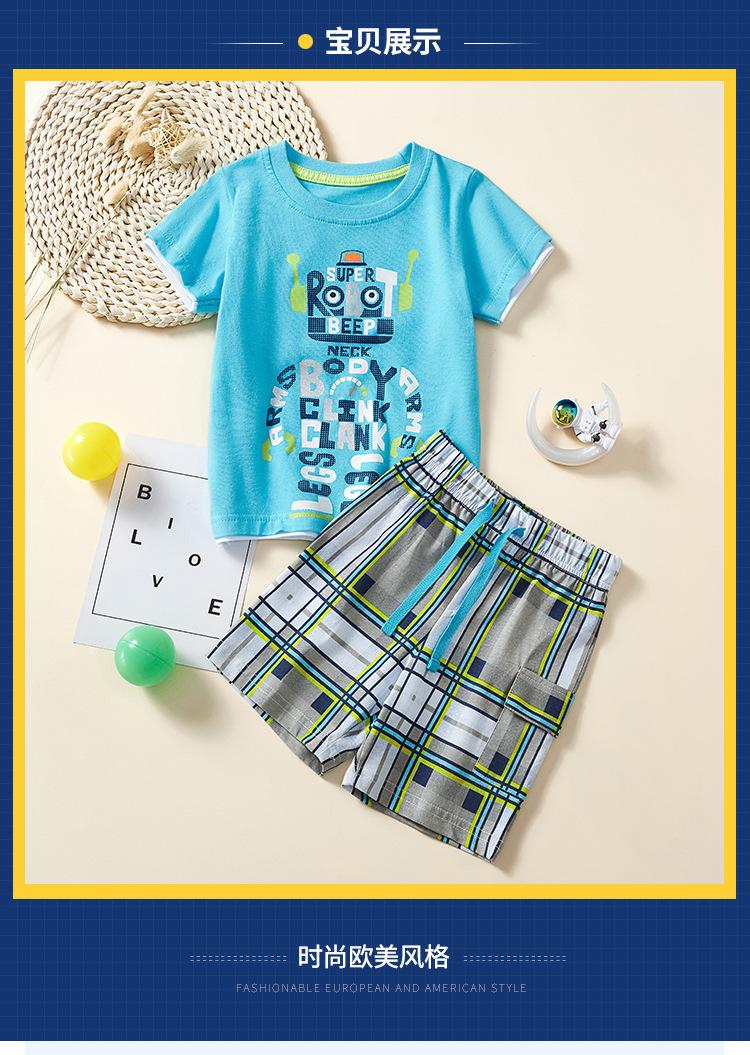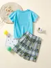 Traje de camiseta para niños de estilo europeo y americano 2025 Pantalones cortos a cuadros Ropa para bebés y niños Conjunto de dos piezas Traje de manga corta para niños