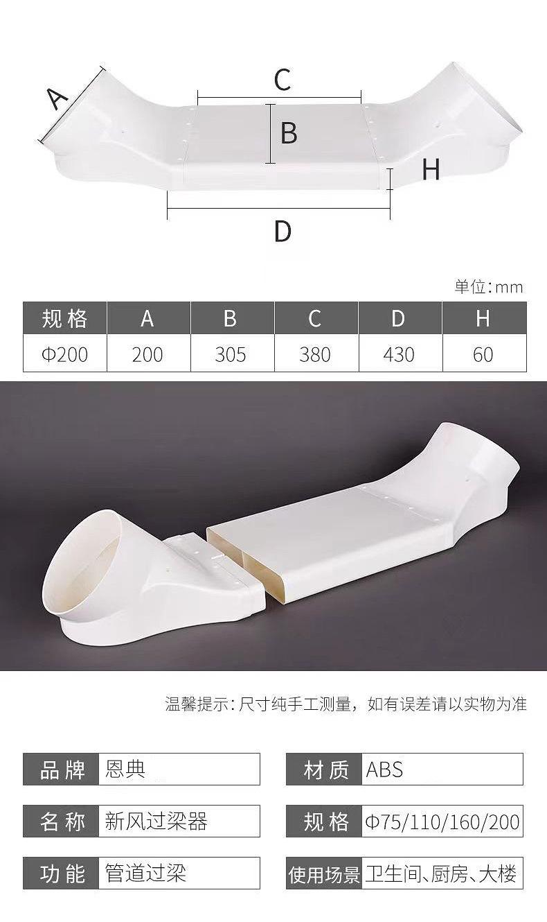 Dispositivo de Viga del Sistema de Aire Fresco, Tubo Plano de Ventilación, Adaptador de Conducto de Aire ABS, Dispositivo de Viga de PVC, Transformador de Tubo Plano de Viga