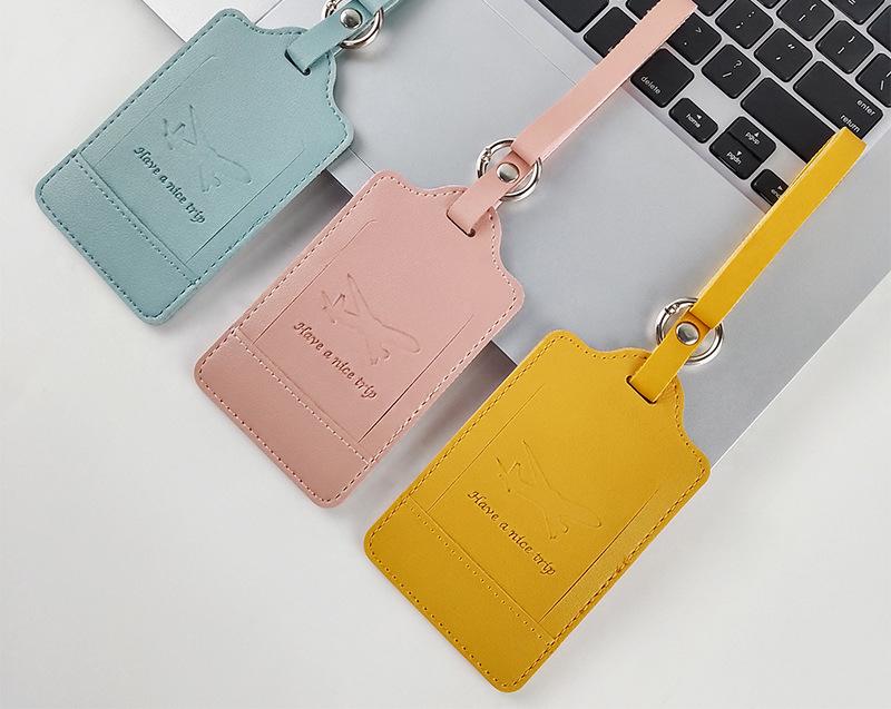 | | Nueva etiqueta de equipaje creativa para tarjeta de embarque de avión multicolor de venta caliente, etiqueta de maleta facturada de cuero PU | |