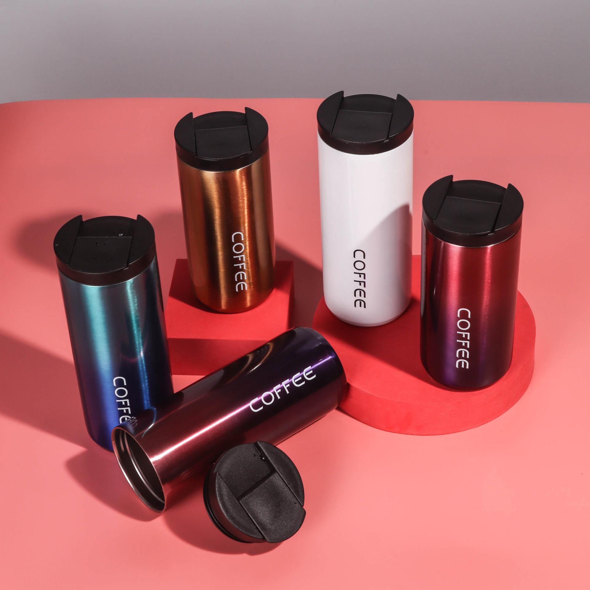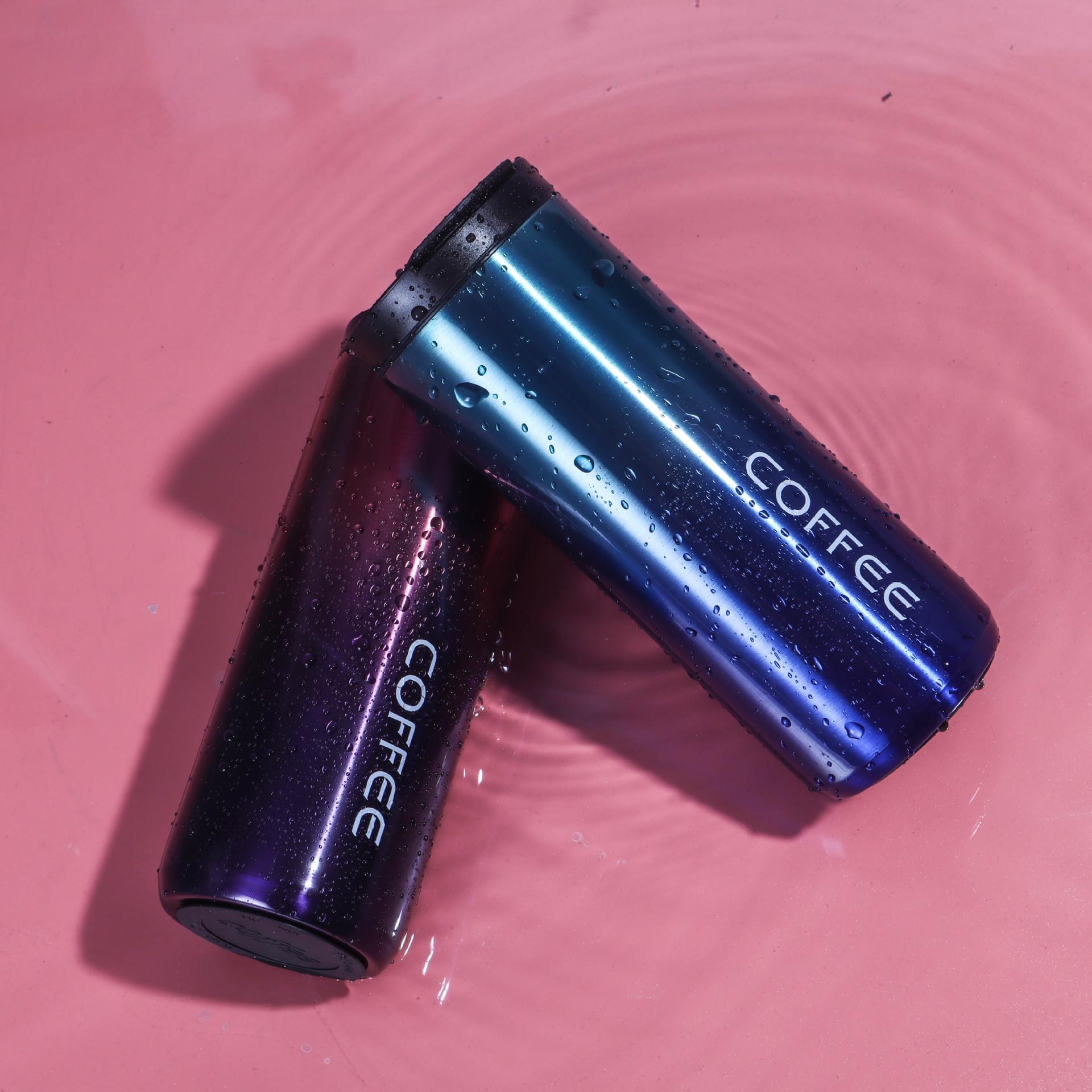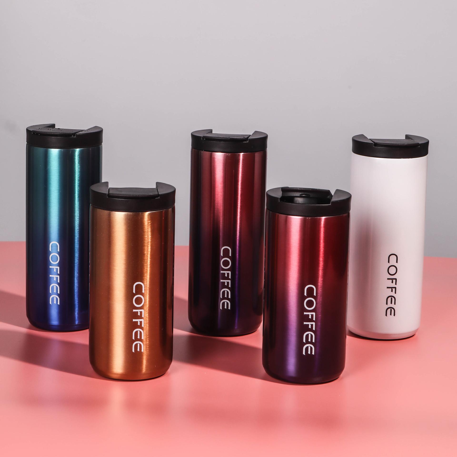 Taza de café con revestimiento de acero inoxidable caliente transfronterizo, taza de agua de doble capa de moda para automóvil, taza portátil conveniente, taza de vacío para exteriores