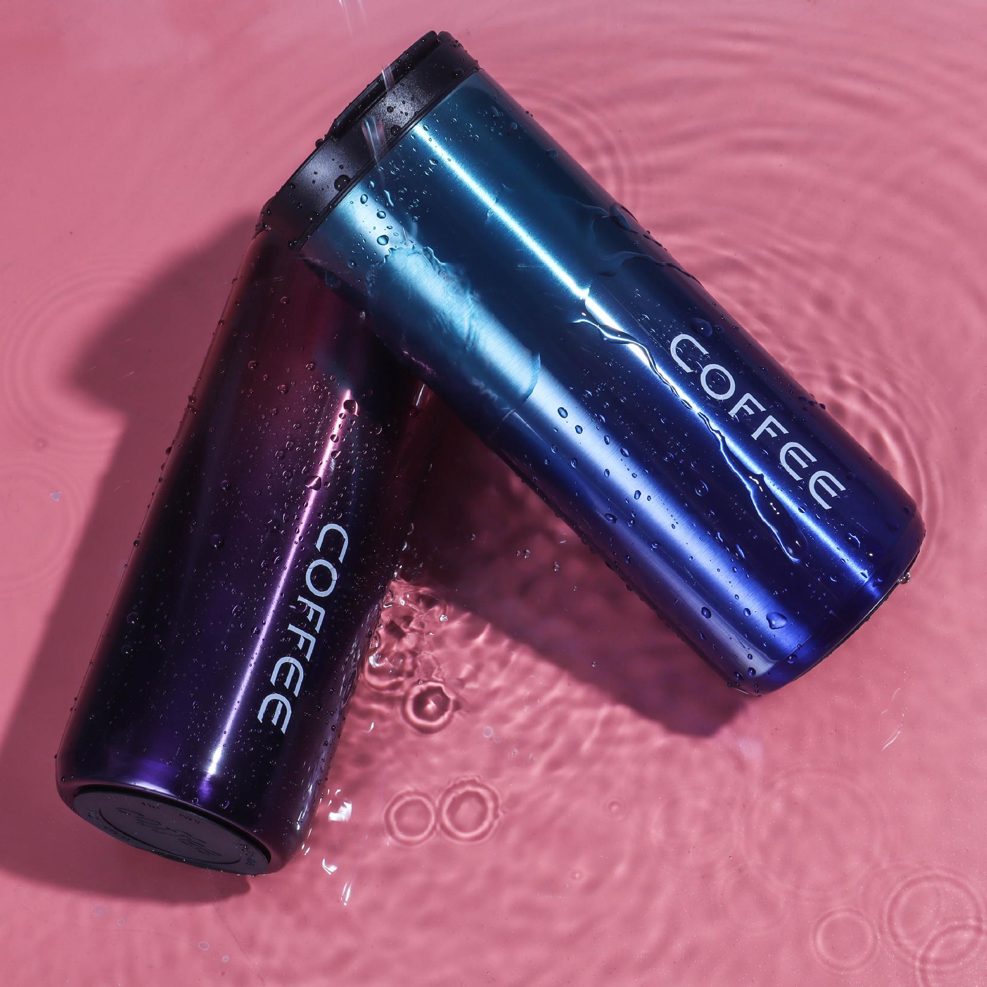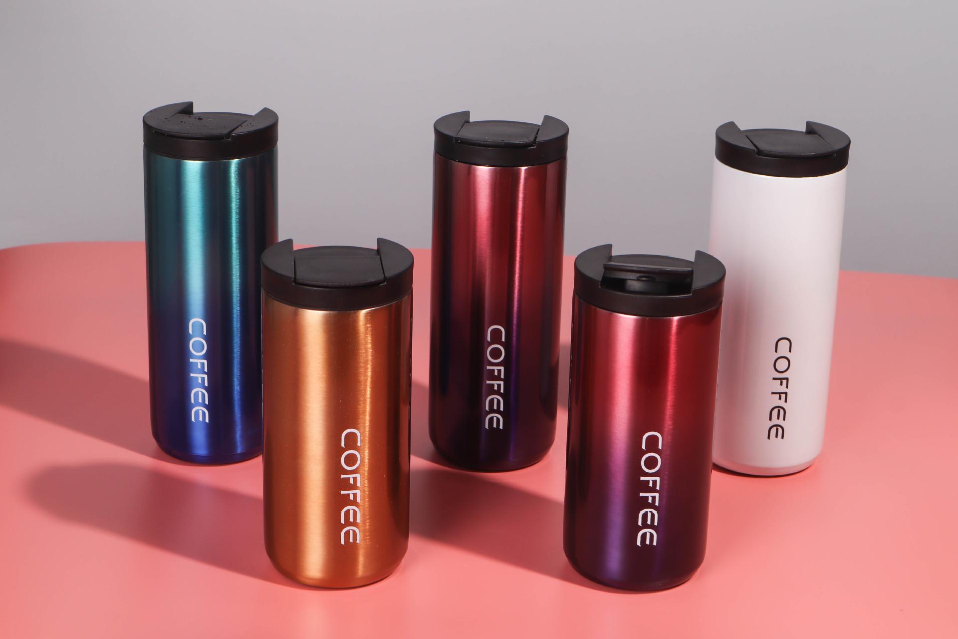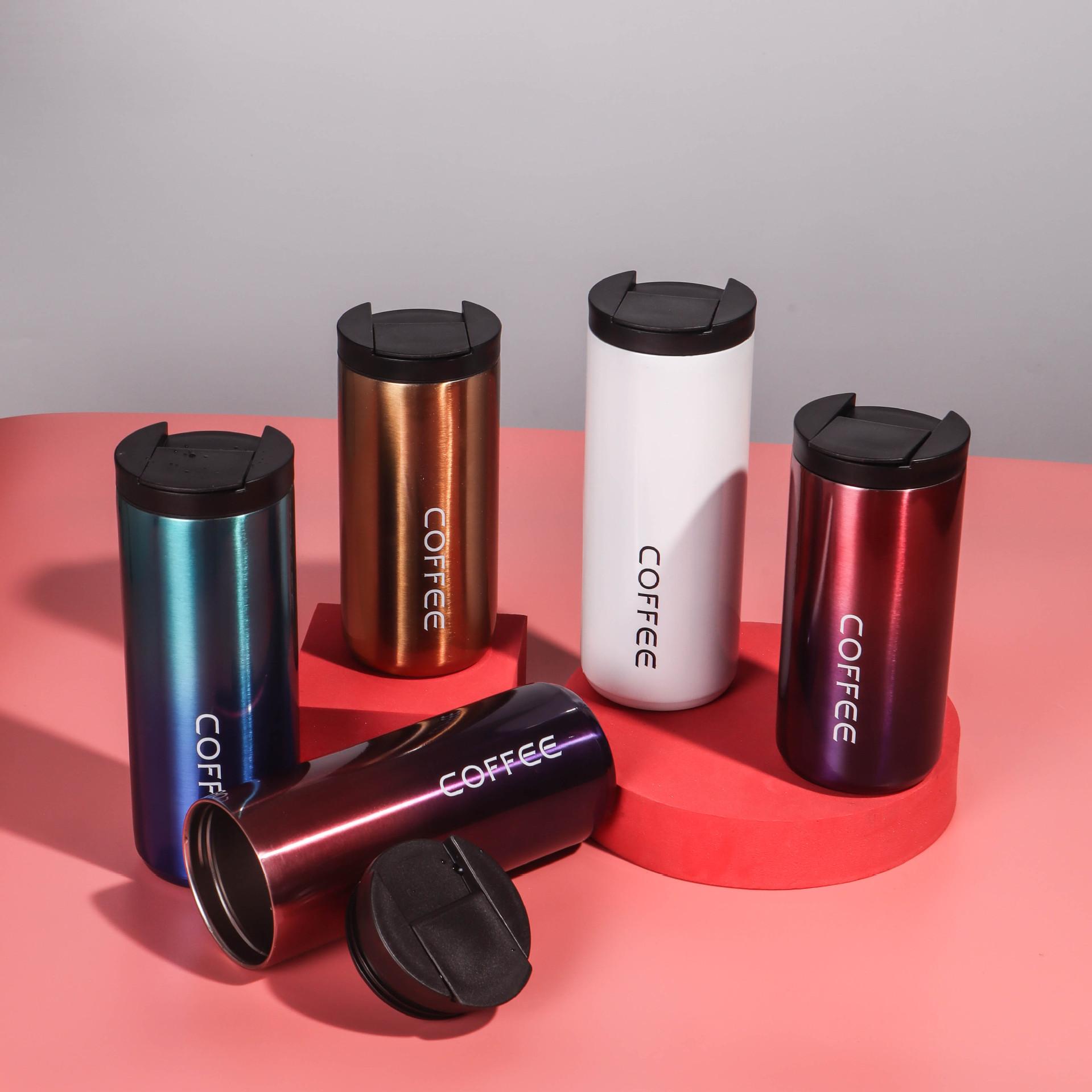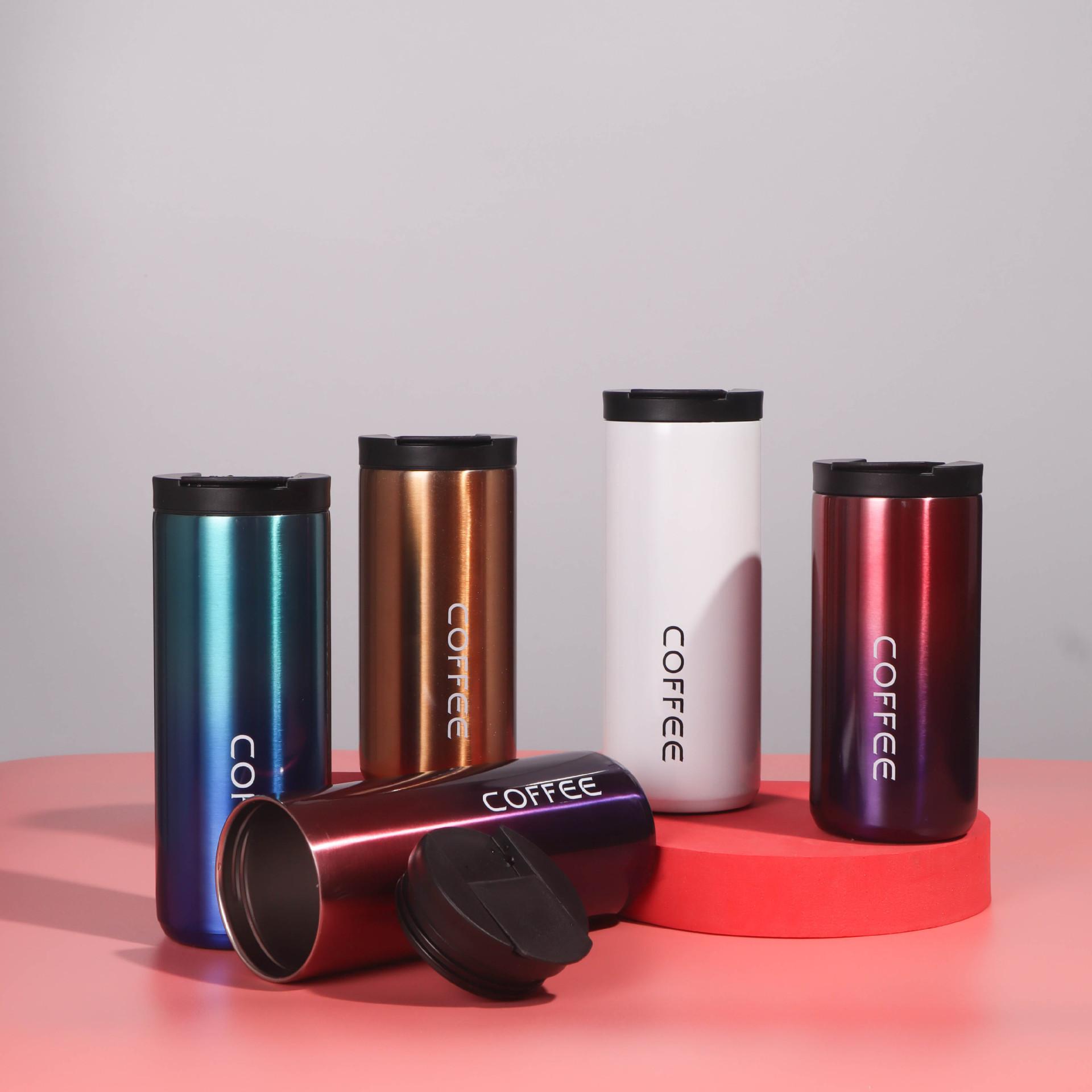 Taza de café con revestimiento de acero inoxidable caliente transfronterizo, taza de agua de doble capa de moda para automóvil, taza portátil conveniente, taza de vacío para exteriores