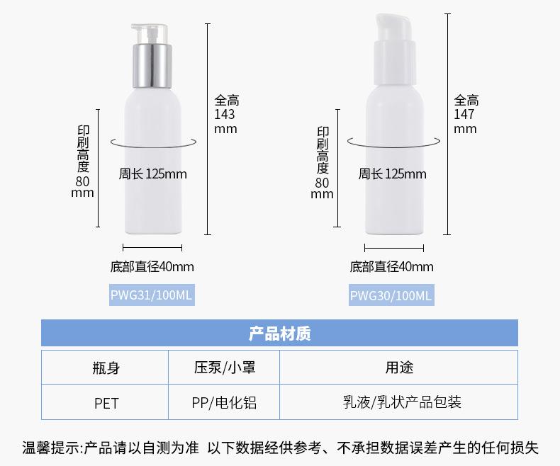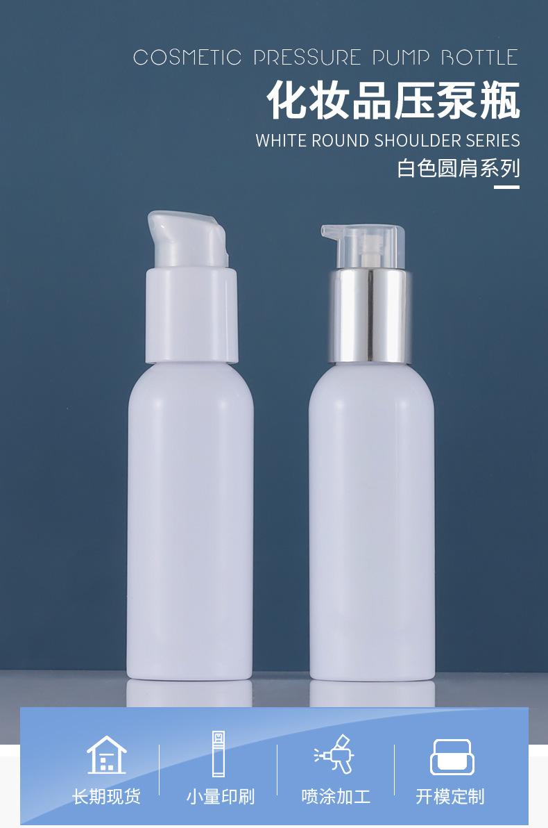 Botella con bomba cosmética de 100 ml, botella de prensa de emulsión, botella vacía blanca, botella de plástico de emulsión PET, materiales de embalaje puntuales