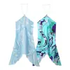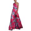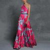 2025 Moda Femenina Transfronteriza Comercio Exterior Estampado de Hojas Hombros Descubiertos Patchwork Europeo y Americano Ins Vestido Largo de Verano con un Bajo Amplio