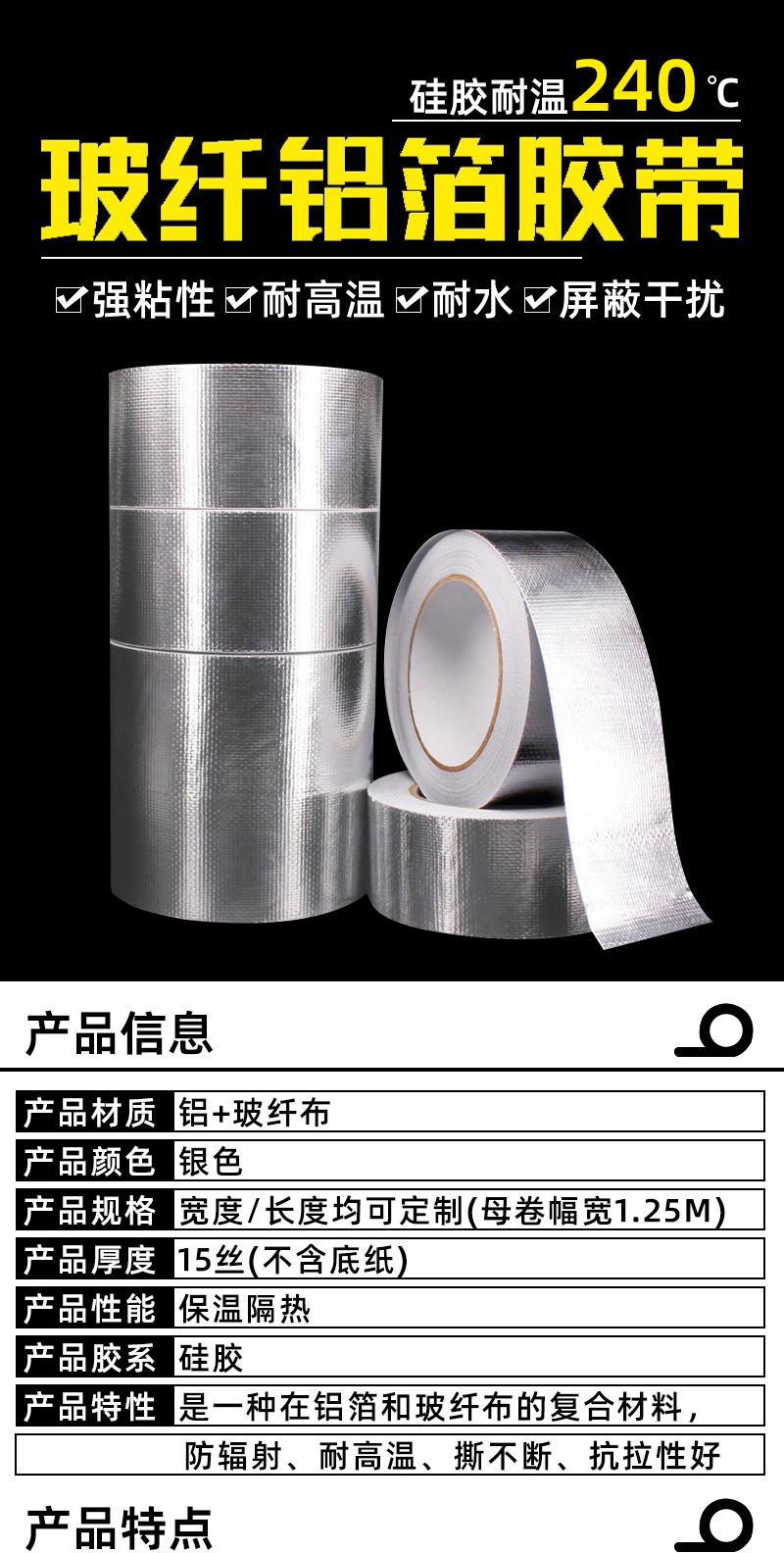 Cinta de fibra de vidrio de un solo rollo engrosada para cortar y sellar tuberías de ventilación de cocina, cinta de fibra de aluminio resistente al agua y a altas temperaturas