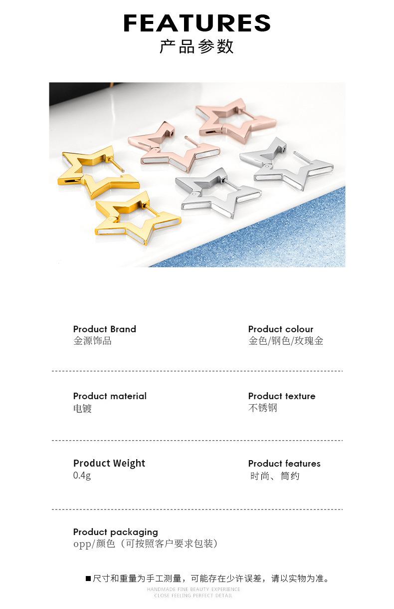 Aretes de acero de titanio estrella fría estilo coreano diseño fresco aretes de estrella de cinco puntas aretes de acero inoxidable para mujer aretes