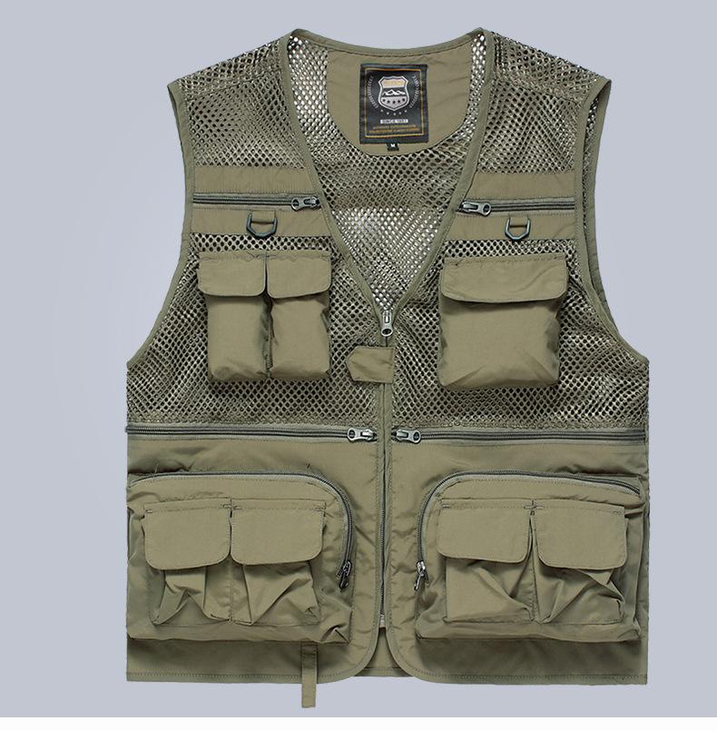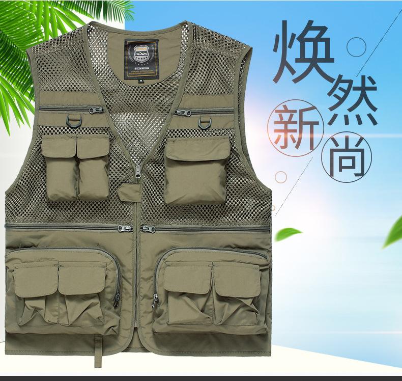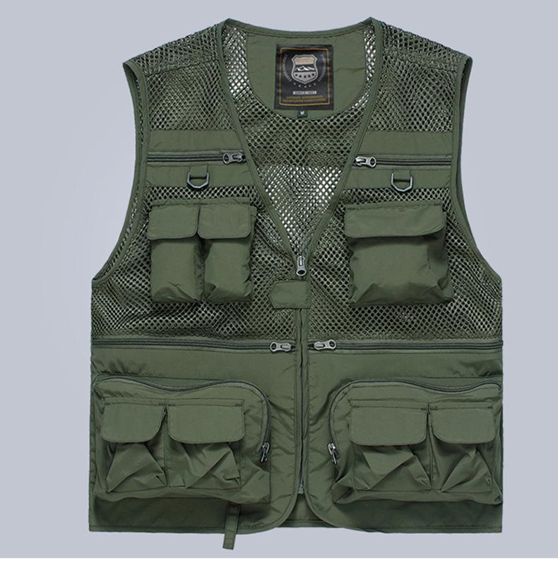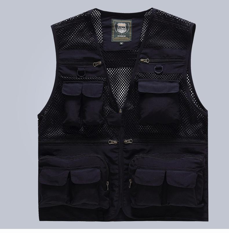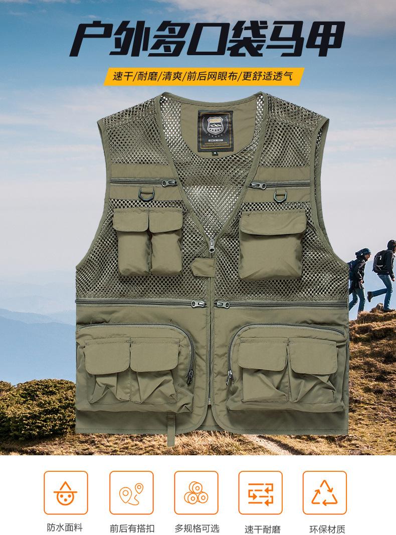 Chaleco de trabajo con impresión personalizada de logotipo, chaleco de malla multibolsillos, chaleco para director de fotografía, reportero, herramientas de medios