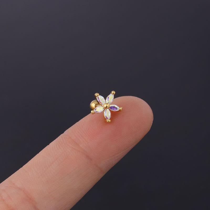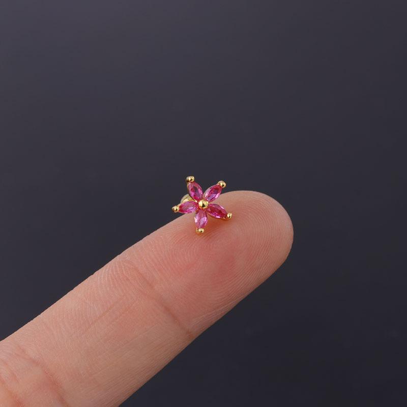 | nombre del producto | Nuevos pendientes de moda con forma de margarita y circonita de colores, de acero inoxidable de 20 g, con forma de varilla fina y forma de bola. |