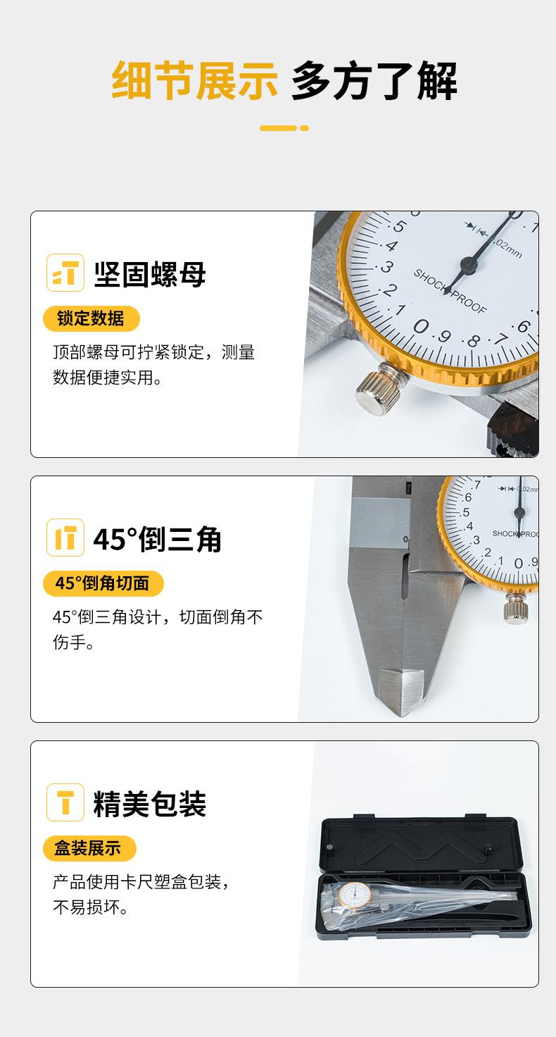 Calibrador Vernier con Dial de Alta Precisión 0-150mm Suministro Transfronterizo A Prueba de Golpes con Dial Acero Inoxidable Portátil