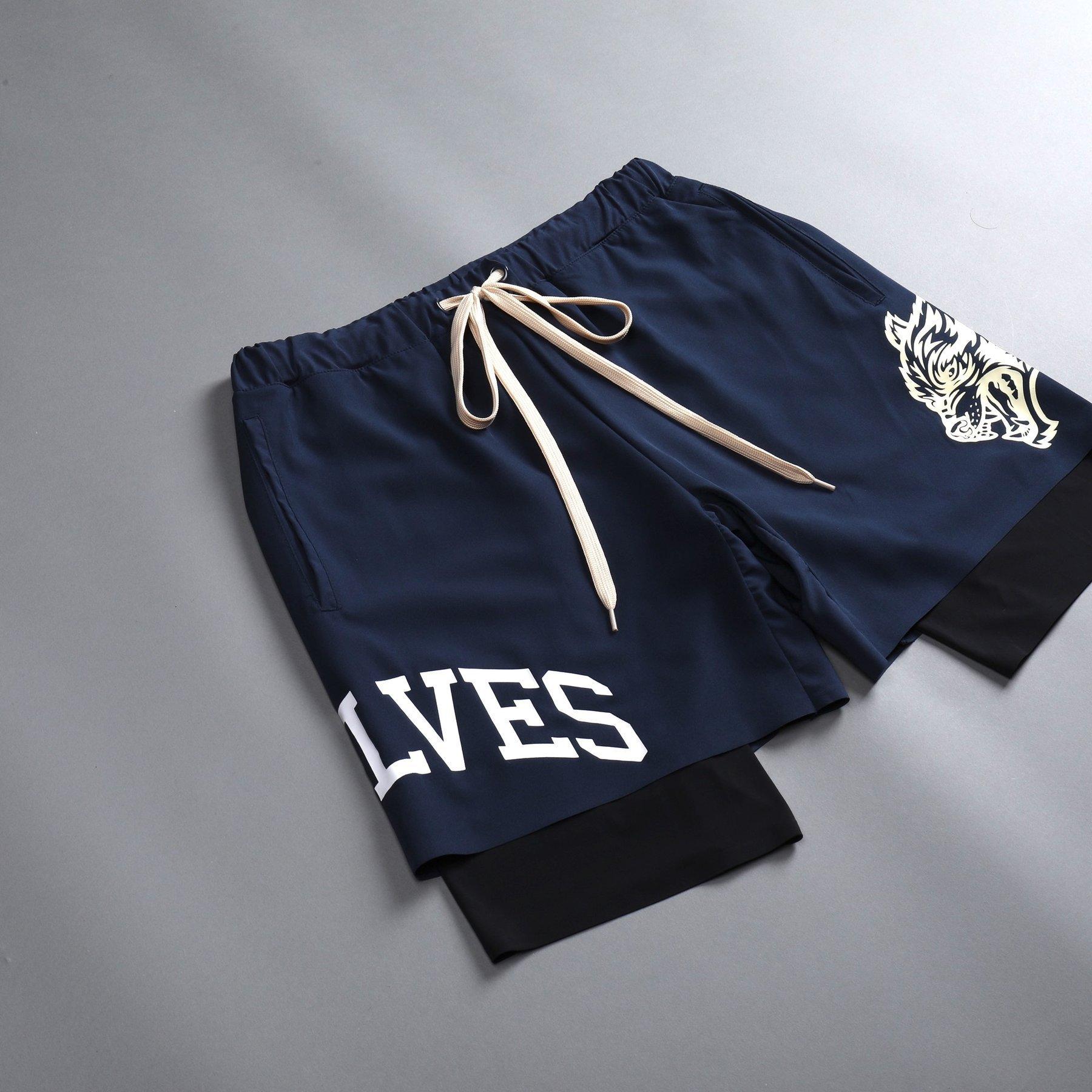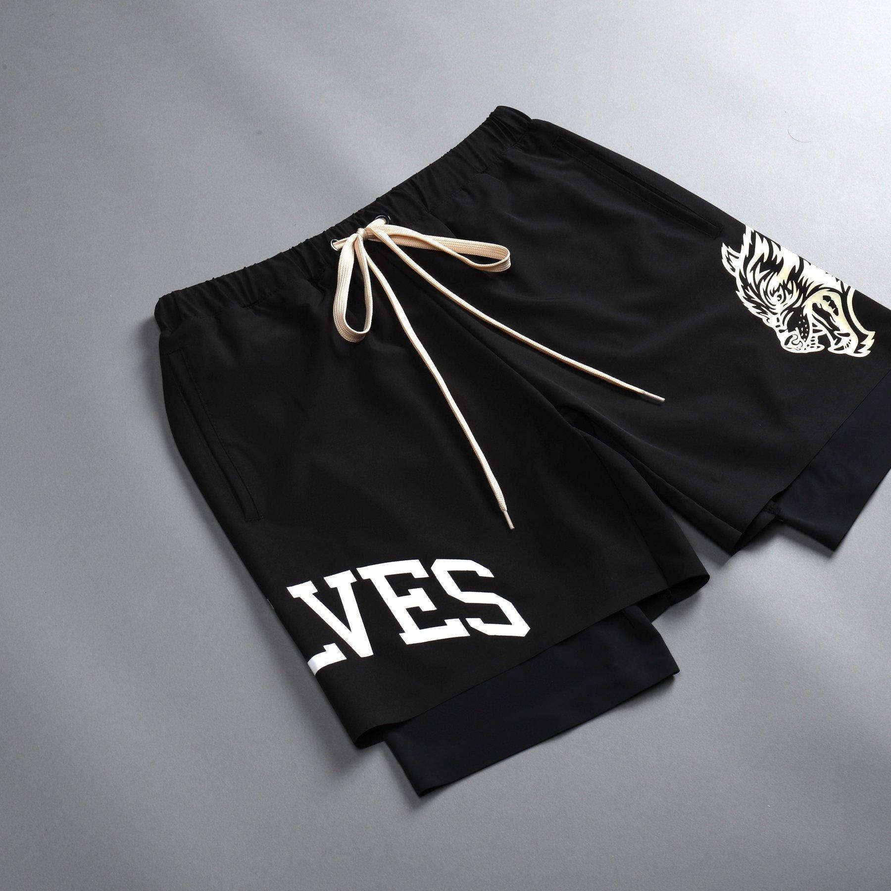 Pantalones cortos de playa de verano de comercio exterior 2023 para hombre, nuevos pantalones cortos deportivos estadounidenses de secado rápido de doble capa con estampado de moda para hombre
