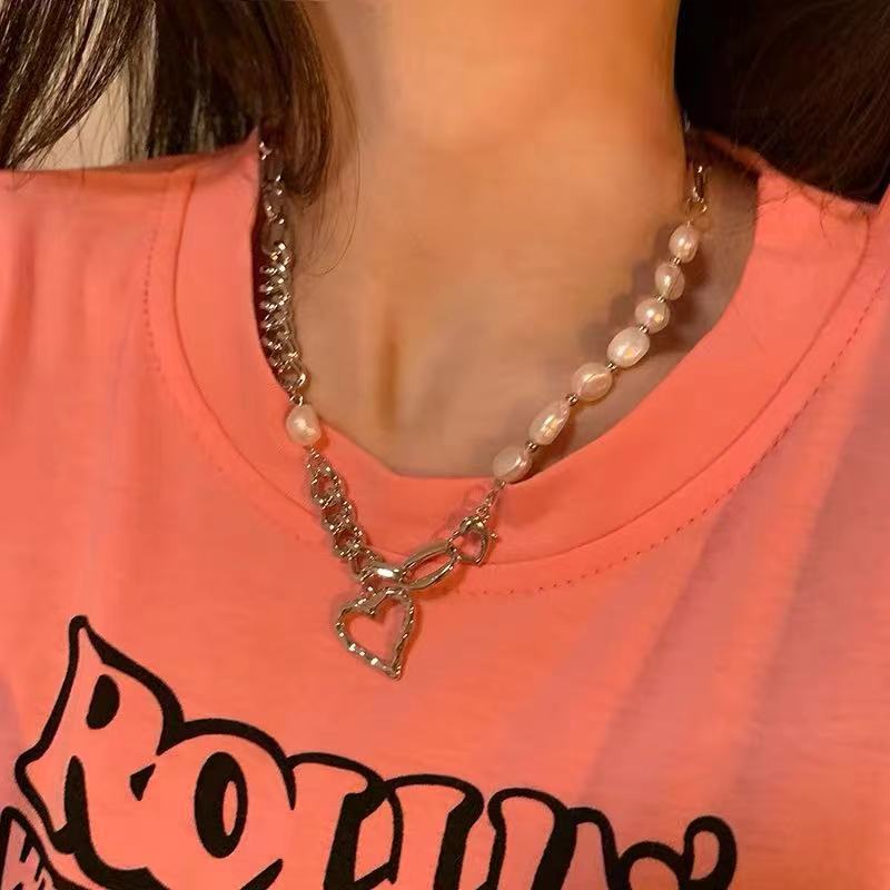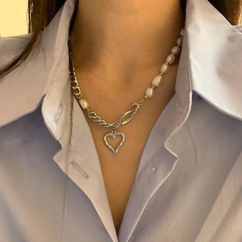 Collar de perlas naturales con costuras de amor para mujer, ligero, lujoso, elegante, de alta calidad, cadena de clavícula, combina con todo el verano.