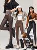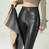 Pantalones de cuero PU de otoño e invierno para mujer, forro polar grueso, leggings de exterior, cintura alta, adelgazantes, pantalones ajustados elásticos de talla grande