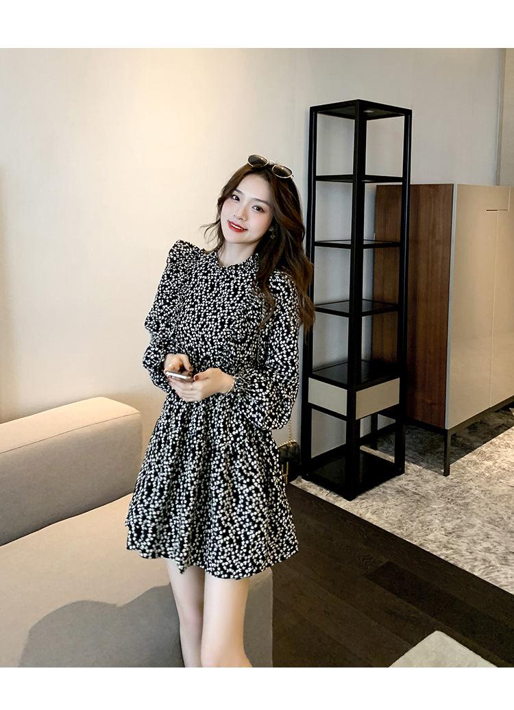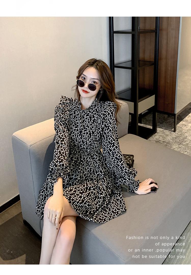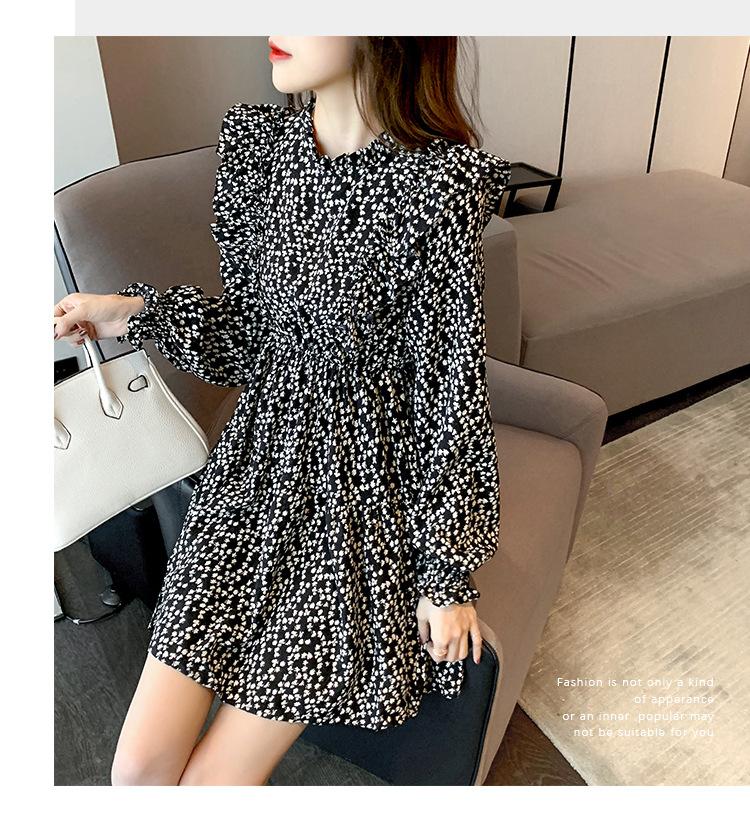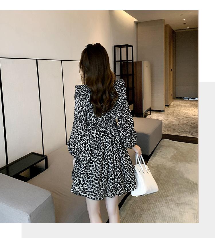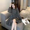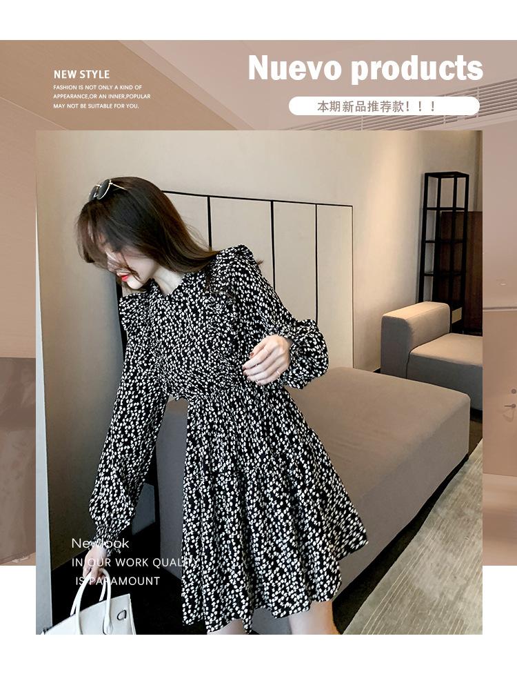 Vestido floral de manga larga ajustado con falda adelgazante y cintura ajustada estilo francés retro estilo Tea Break para mujer, primavera y otoño 2024