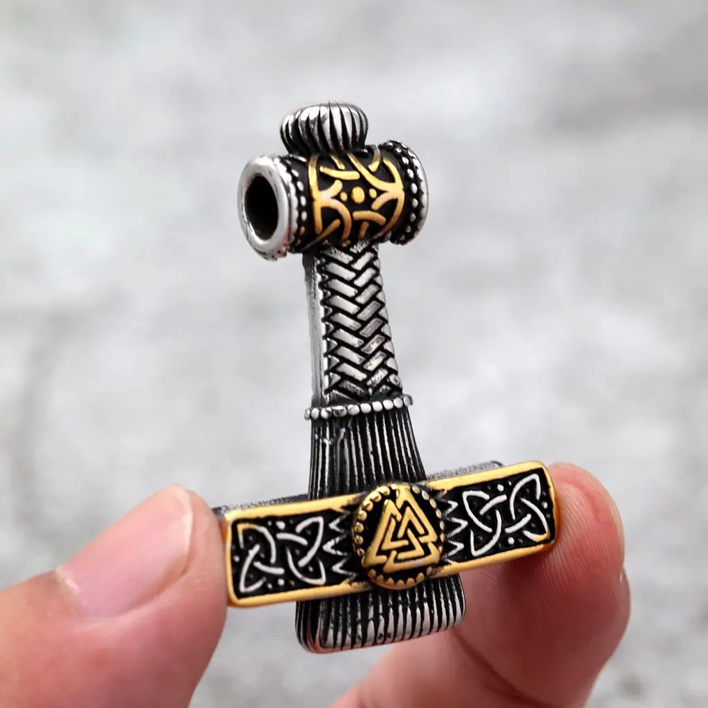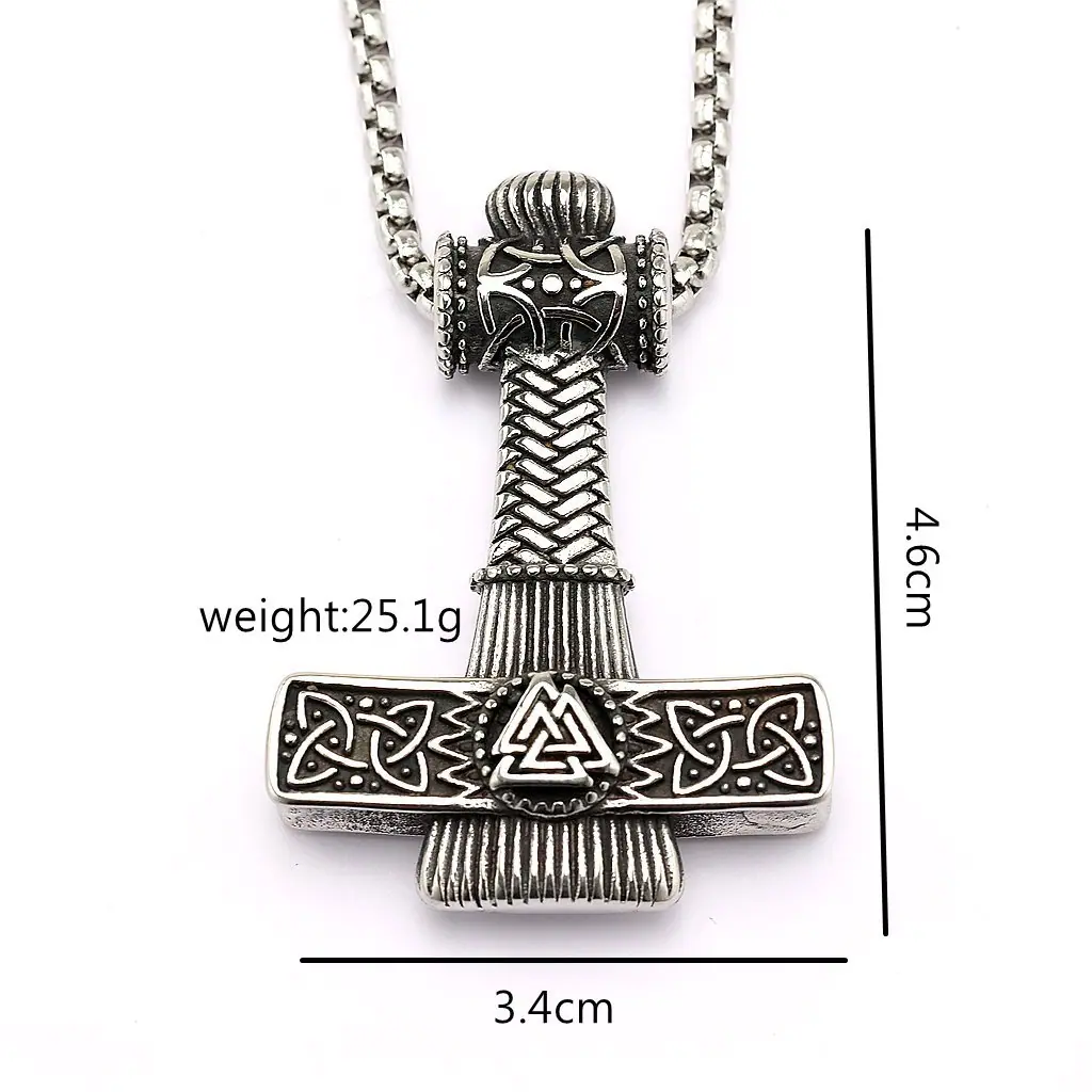 Joyería Retro Europea y Americana Colgante de Acero Inoxidable Vikingo de Doble Cara Martillo de Thor
