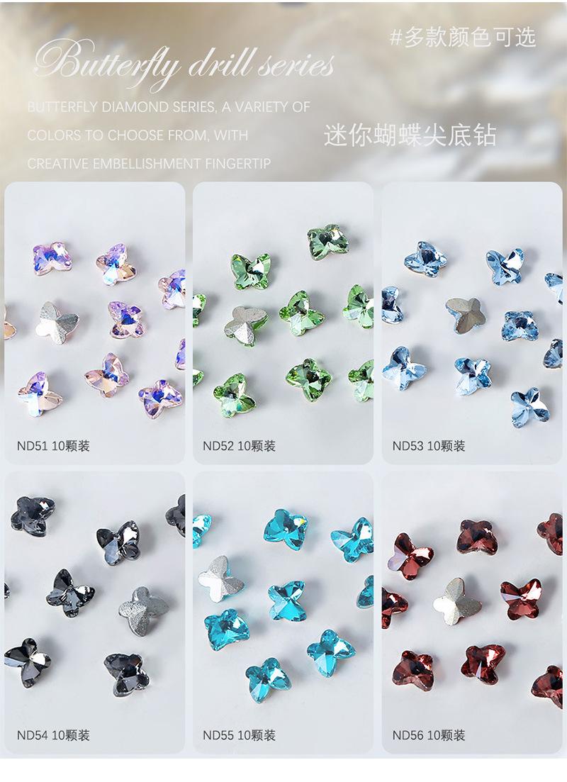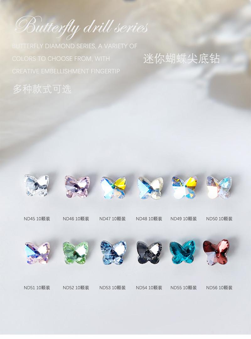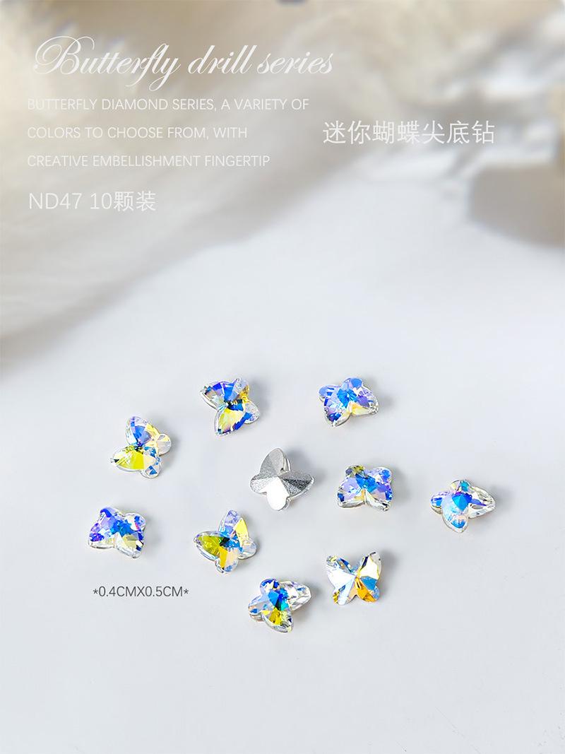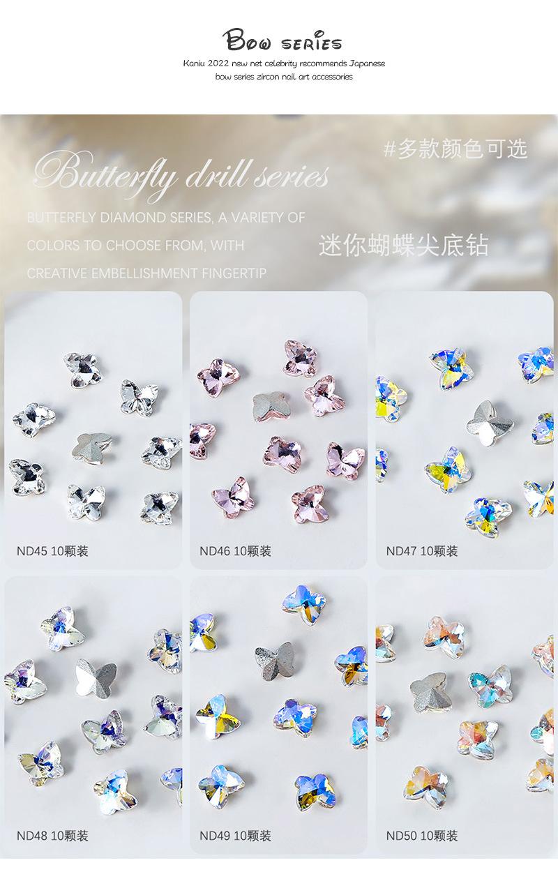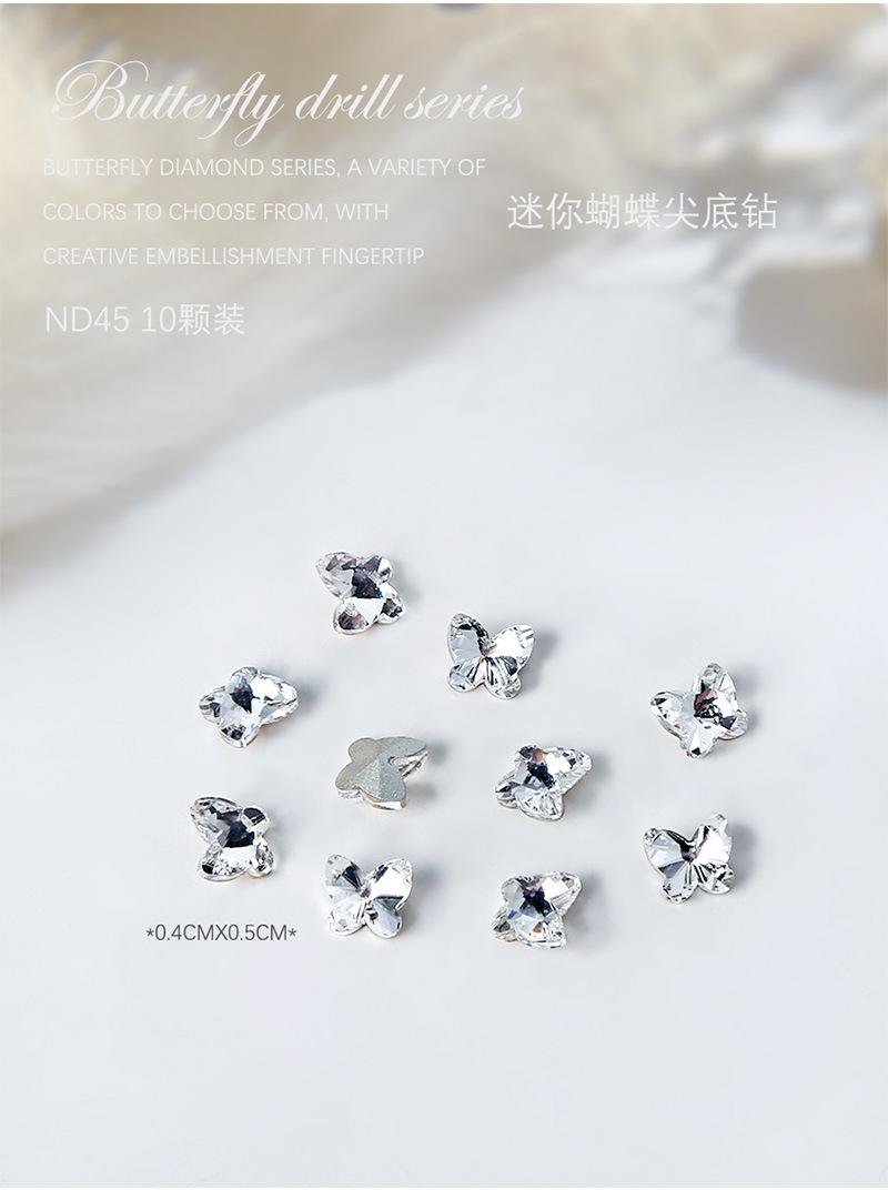 Mini decoración de uñas con diseño de mariposa y diamante, paquete de 10