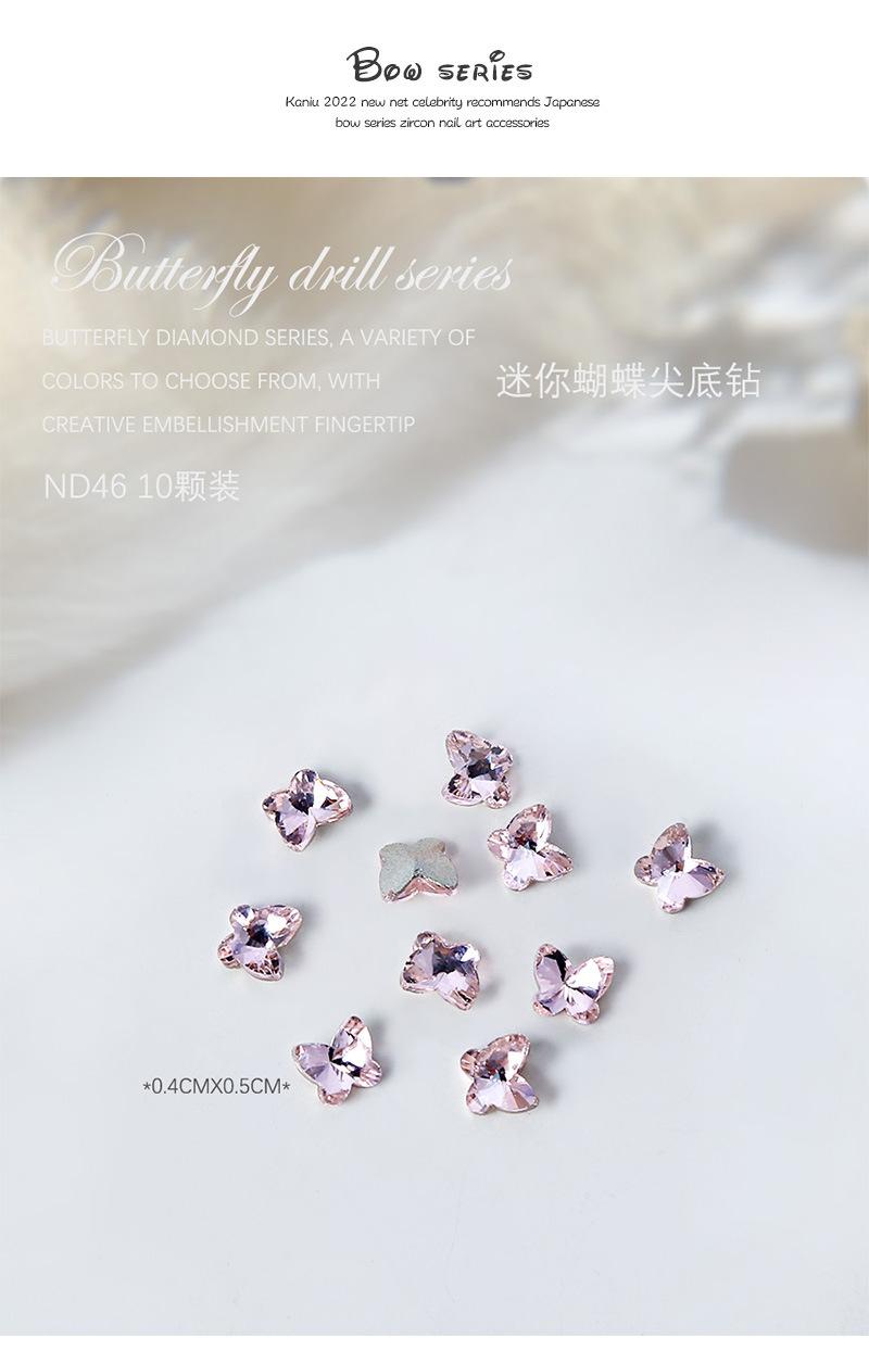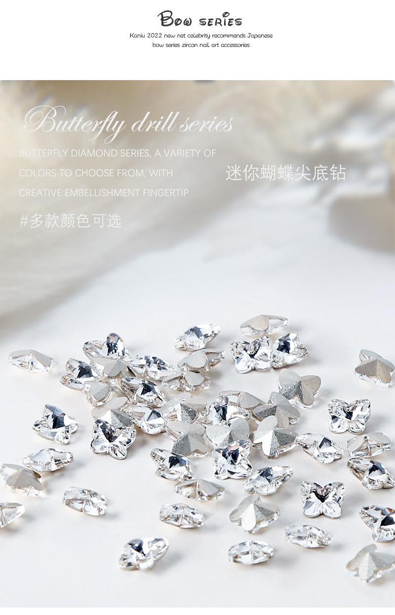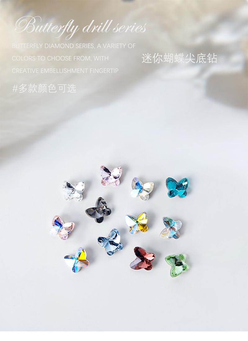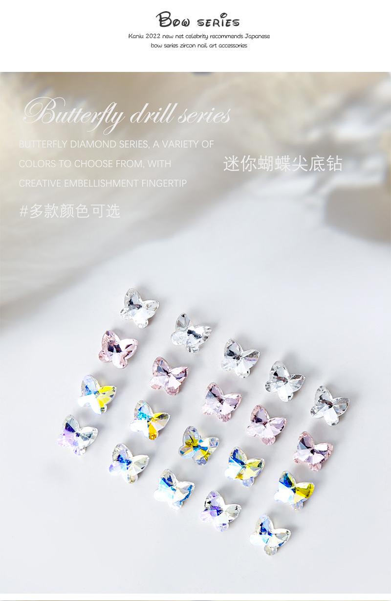 Mini decoración de uñas con diseño de mariposa y diamante, paquete de 10
