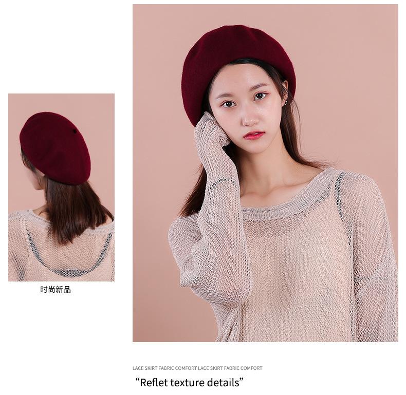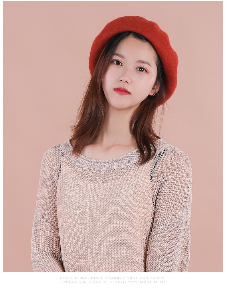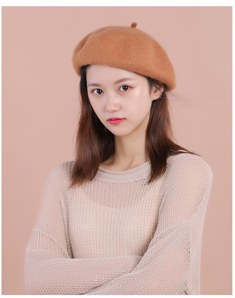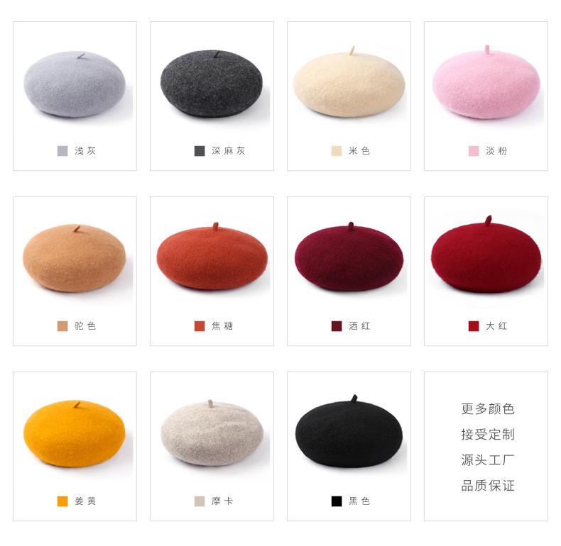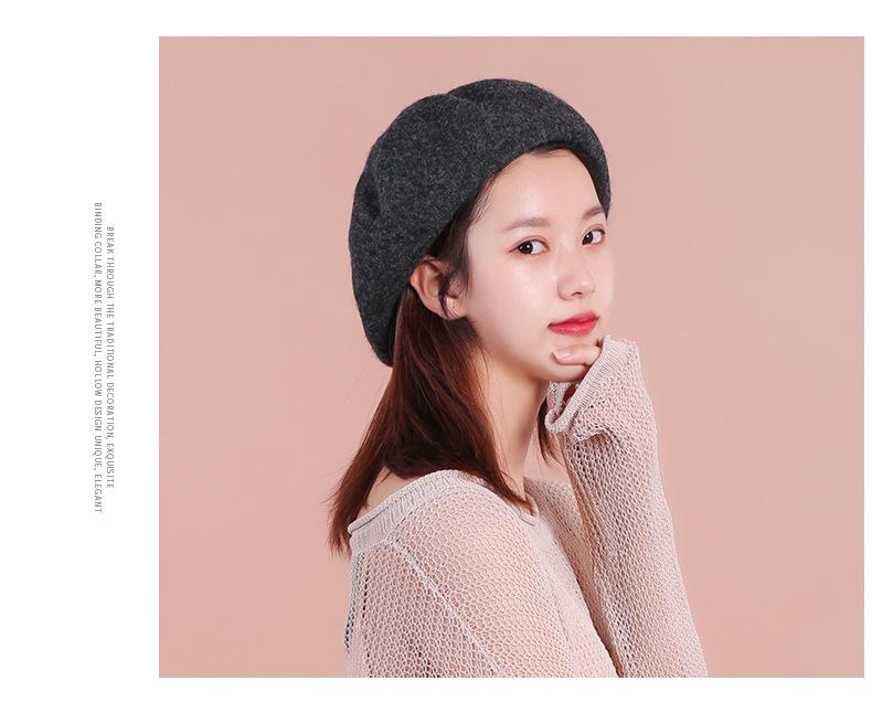 Boina de lana vintage combinable para mujer, otoño e invierno, estilo coreano, gorro de lana, gorro de pintor de calabaza, gorro sencillo de estilo japonés.