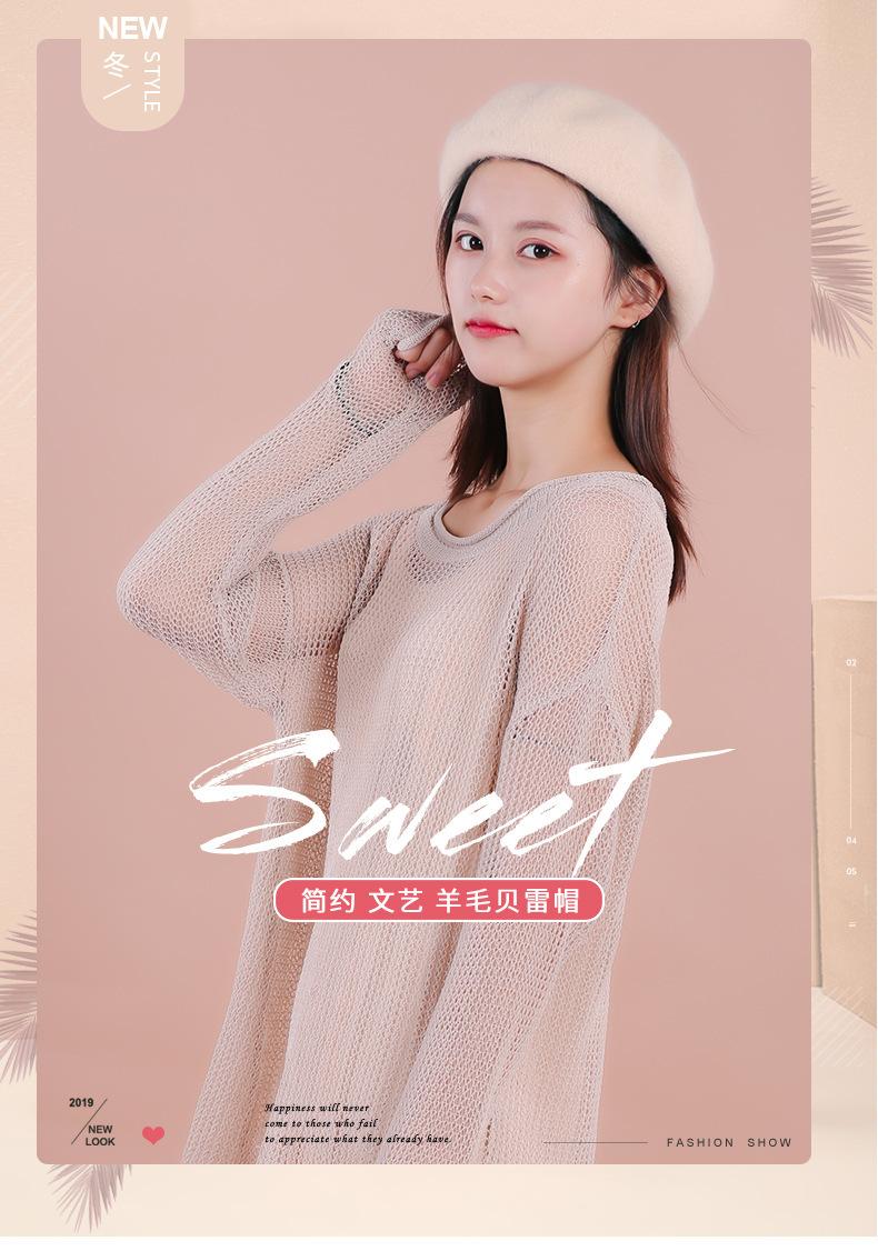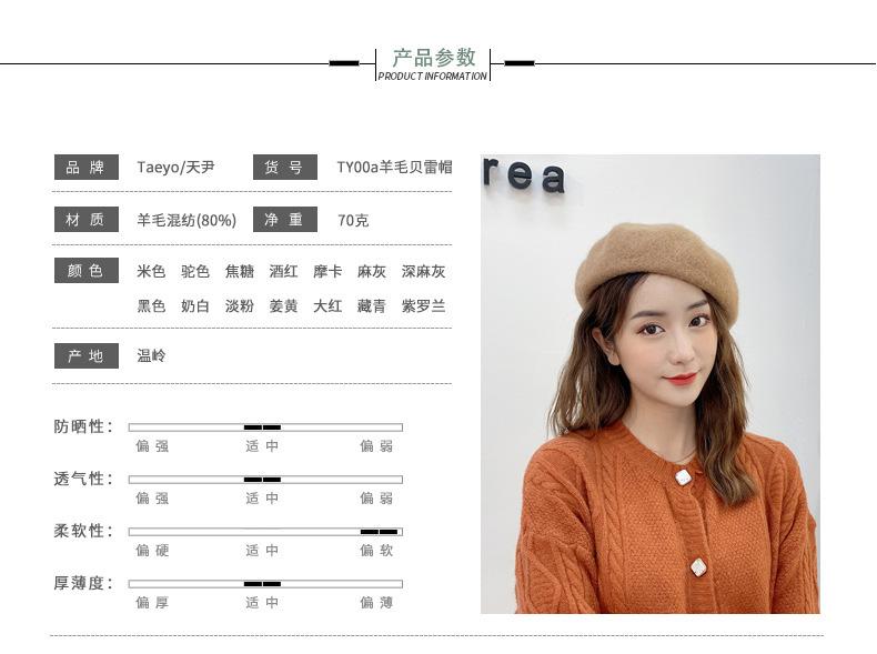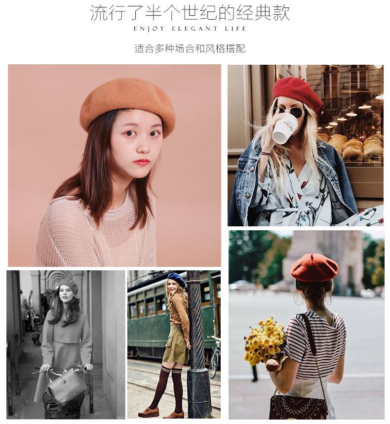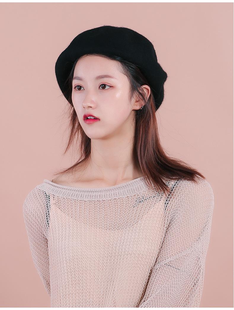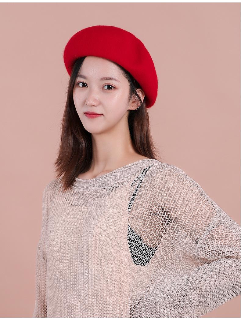 Boina de lana vintage combinable para mujer, otoño e invierno, estilo coreano, gorro de lana, gorro de pintor de calabaza, gorro sencillo de estilo japonés.