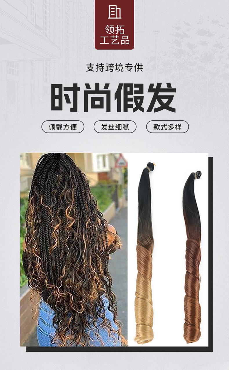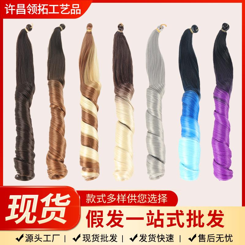 Peluca de tubo envuelto con fibra química enrollada en la parte superior e inferior con trenza de cabello rizado grande y ondulado