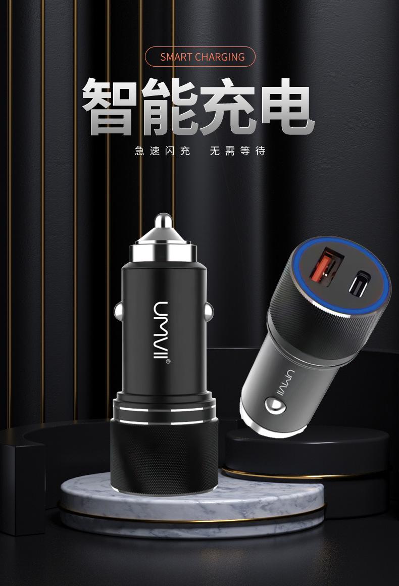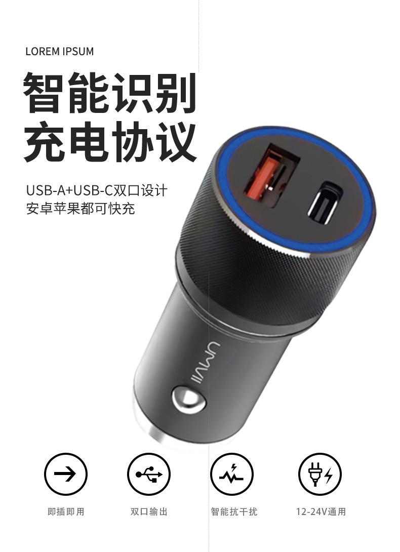 Black PD20W dual port A C car charger, silver PD20W zinc alloy dual port A C car charger, Black dual USB port 2.4A car charger