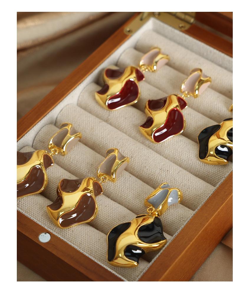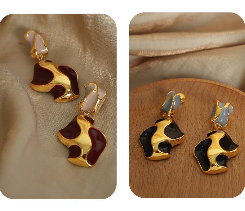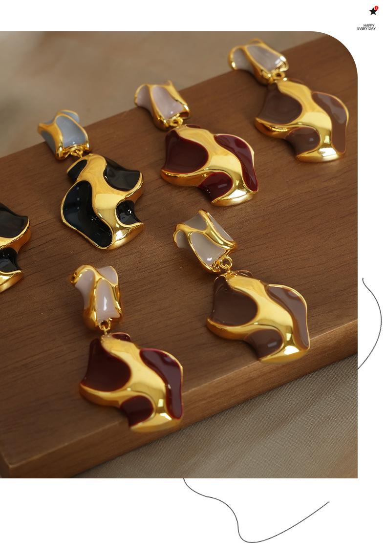 Pendientes de cobre con costuras esmaltadas de color, estilo chic, personalizados, de nicho, de moda, sencillos, elegantes y geométricos.