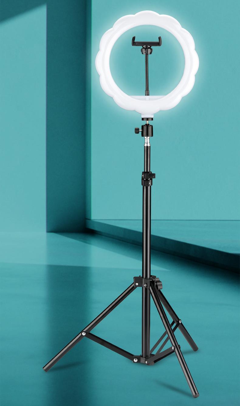 Set de Luz de Relleno de 2.2m Luz de Anillo Trípode para Transmisiones en Vivo Soporte Luz de Relleno Teléfono Móvil Luz de Relleno LED