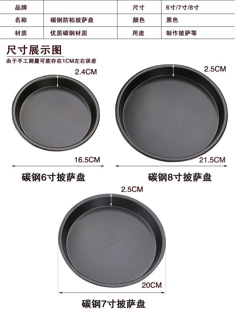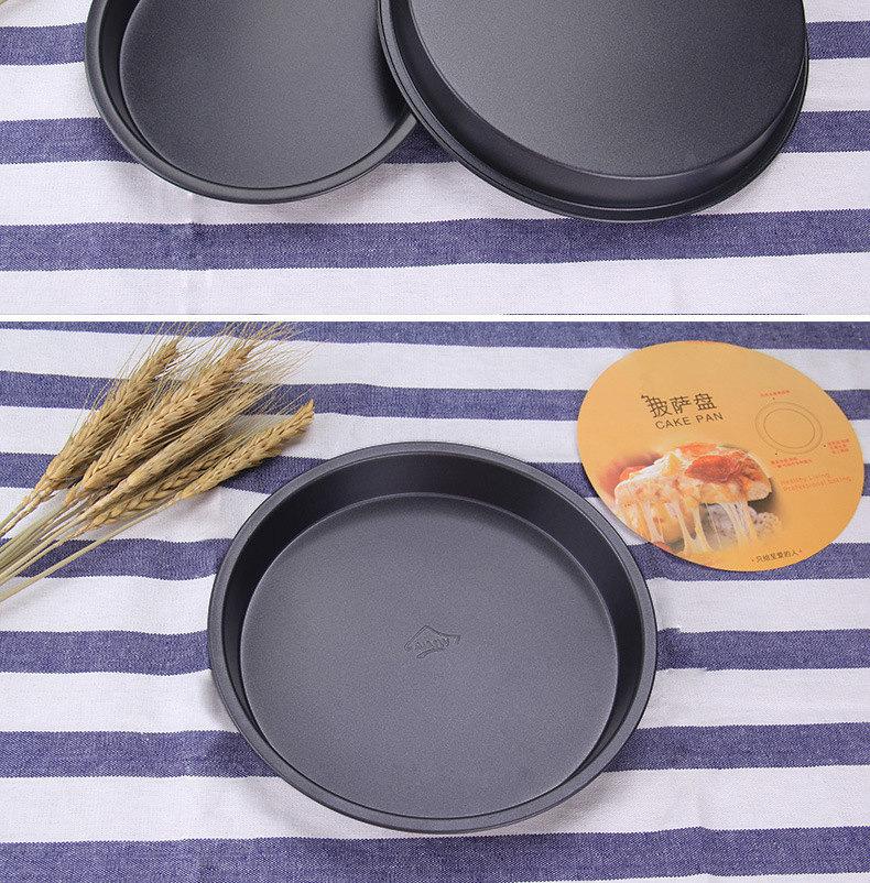 Descripción del producto: 30 piezas/caja, fabricado en acero al carbono con capa antiadherente de teflón, buena calidad, no pierde pintura fácilmente, resistente y duradero, un plato bueno y poco común para hacer pizza.
