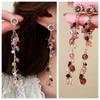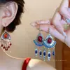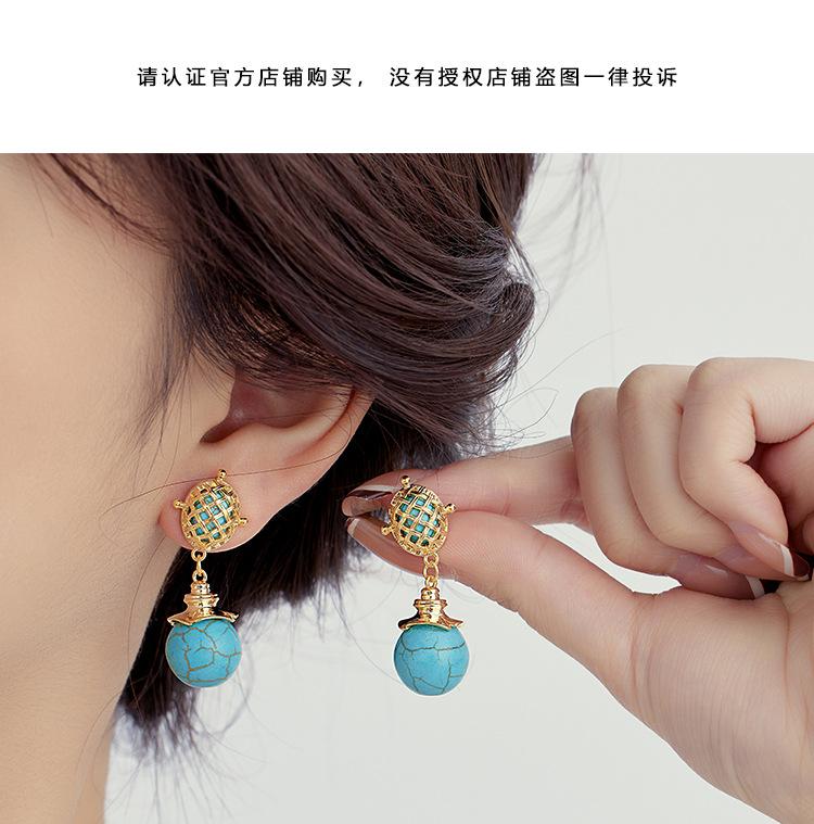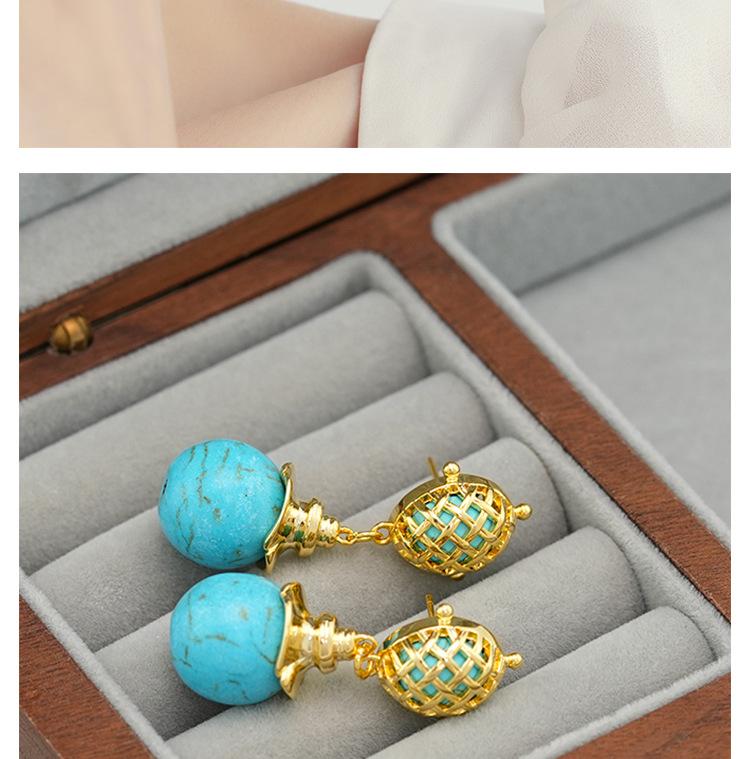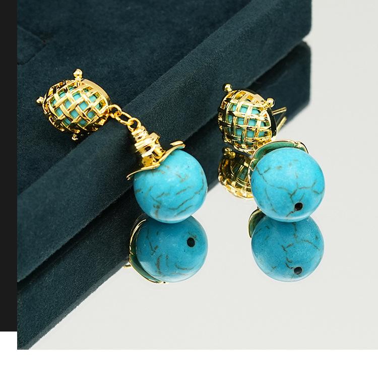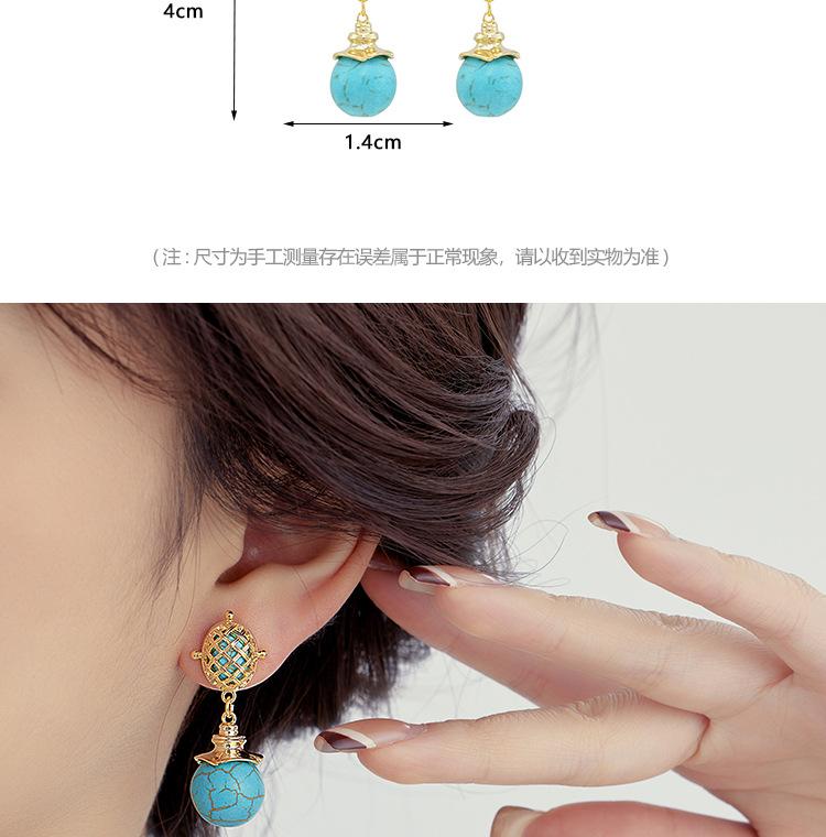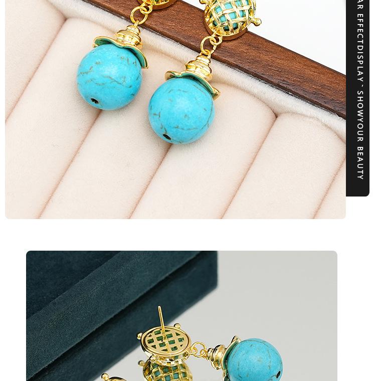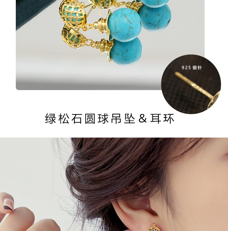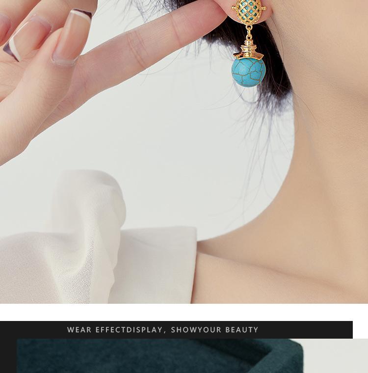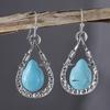 Pendientes largos de turquesa con aguja plateada, estilo étnico, diseño elegante y femenino, 2024