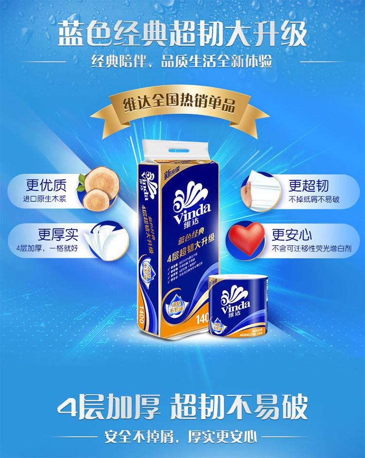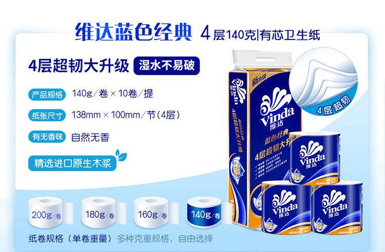 Compra Papel Higiénico Vinda Rollo Azul Clásico 4 Capas 10 Rollos Súper Resistente Rollo con Centro Papel Higiénico de Mano Vinda V4069 al por mayor en Joom.pro