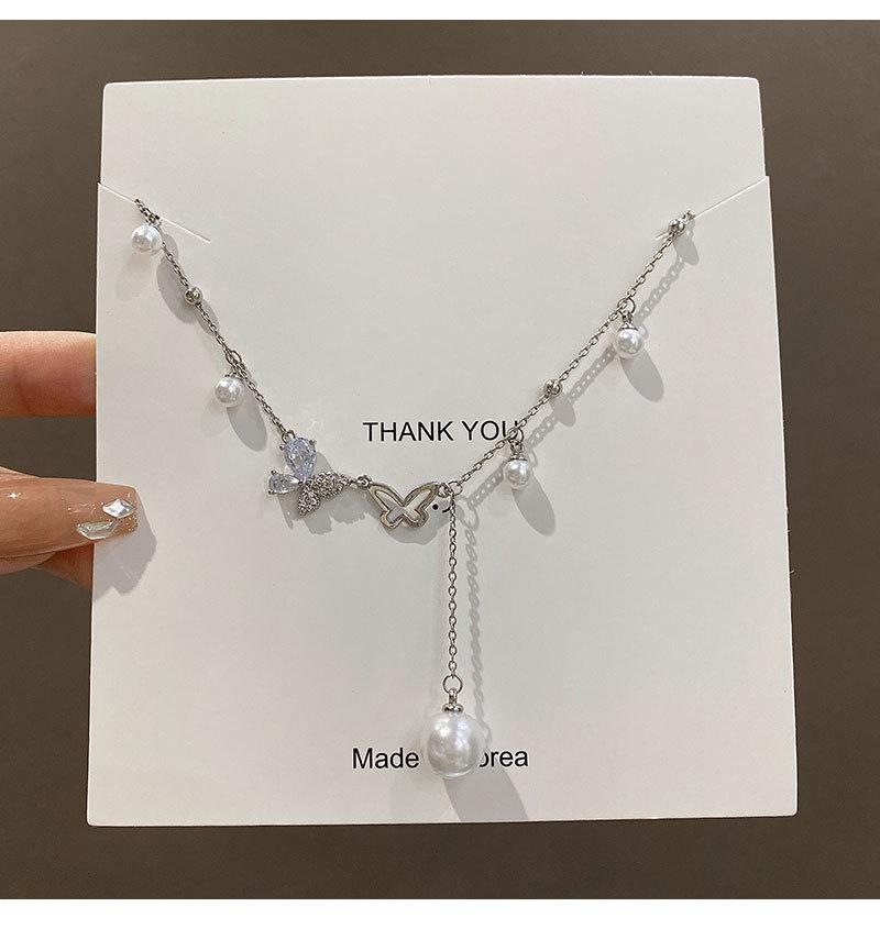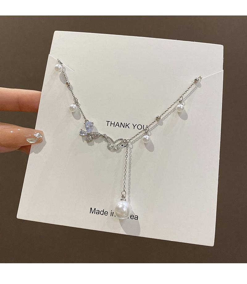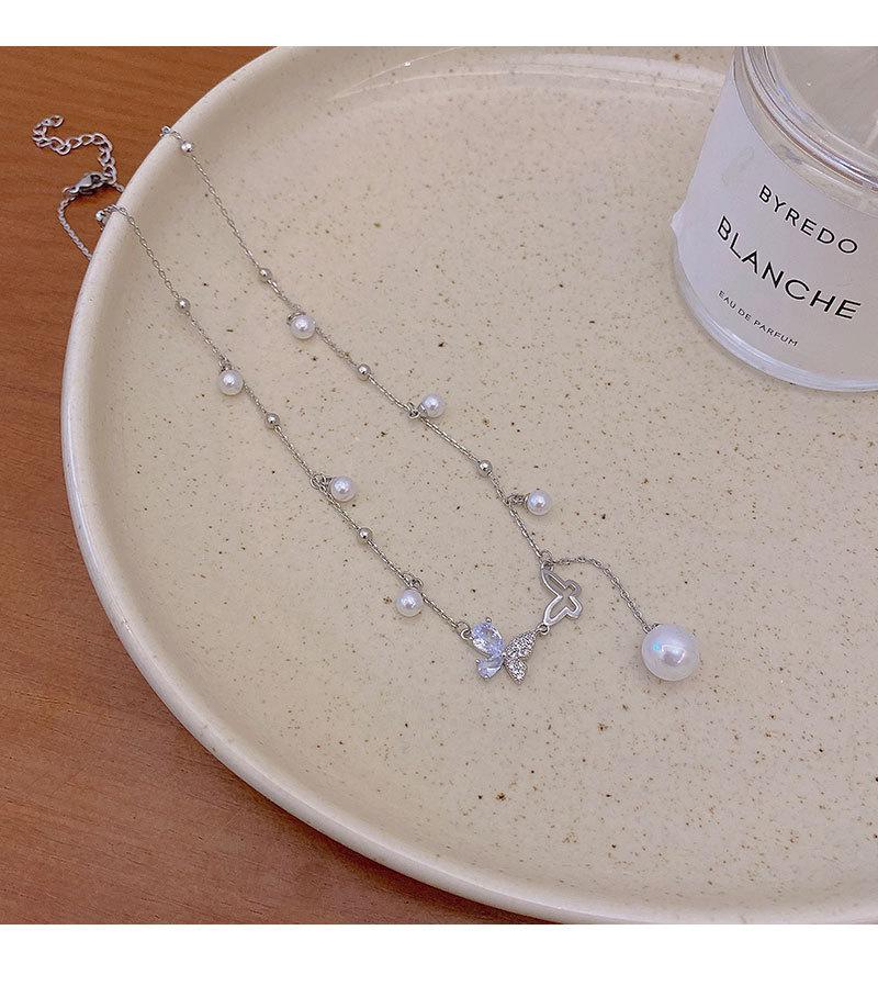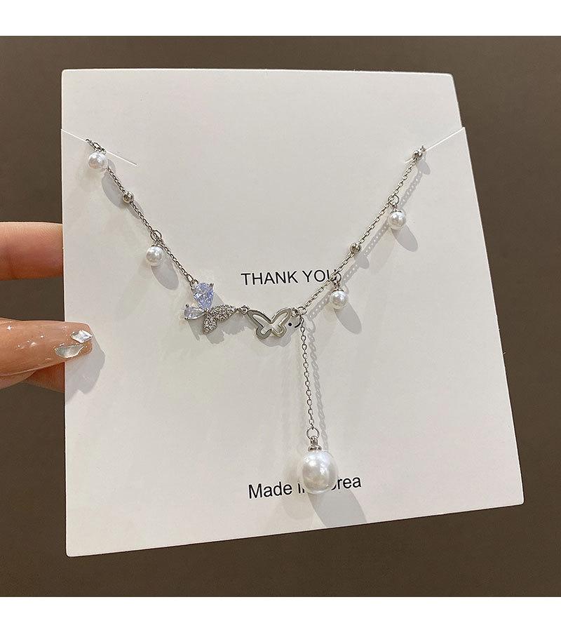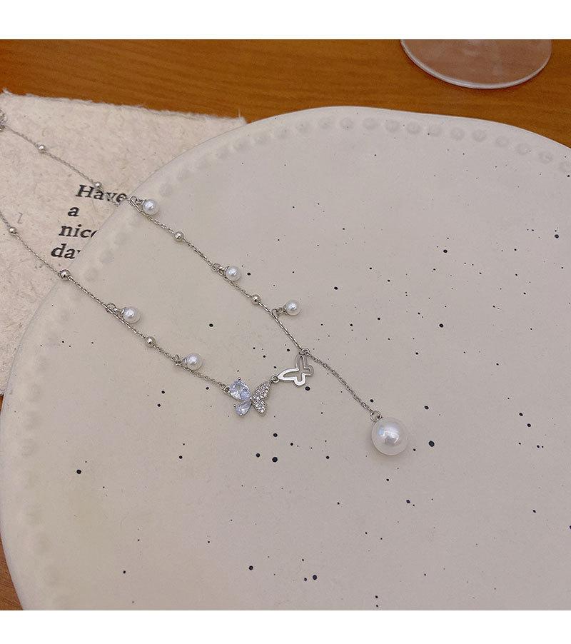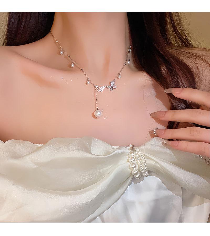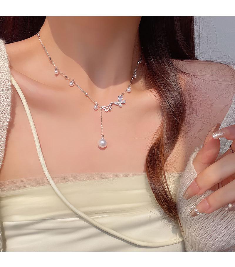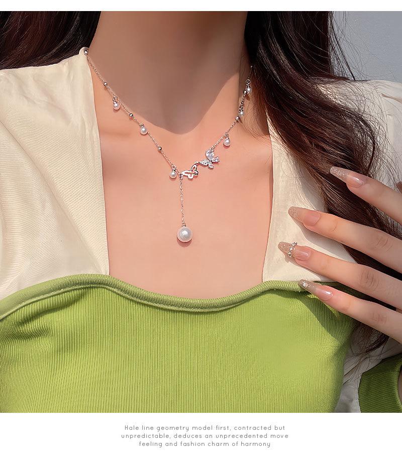 Collar de mariposa con borlas y perlas para mujer, diseño de nicho de lujo ligero, cadena de clavícula de celebridades de Internet, accesorios de collar de alta calidad a la moda