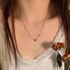 Collar de ojo de gato de corazón rosa para mujer lujo ligero suave empalme de perlas cadena clavicular diseño de nicho accesorios de alta gama