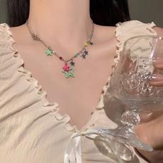 Collar de estrella hueca colorida para mujer, diseño nicho, collar de personalidad de alta gama, temperamento dopamínico, cadena de clavícula versátil