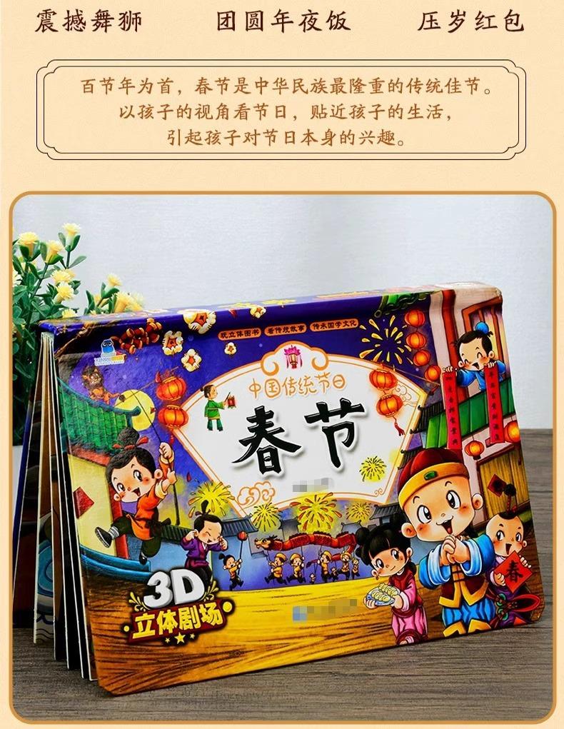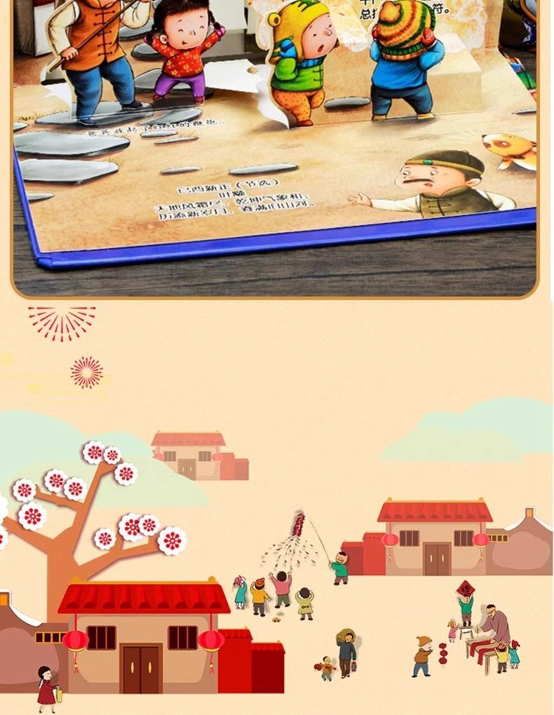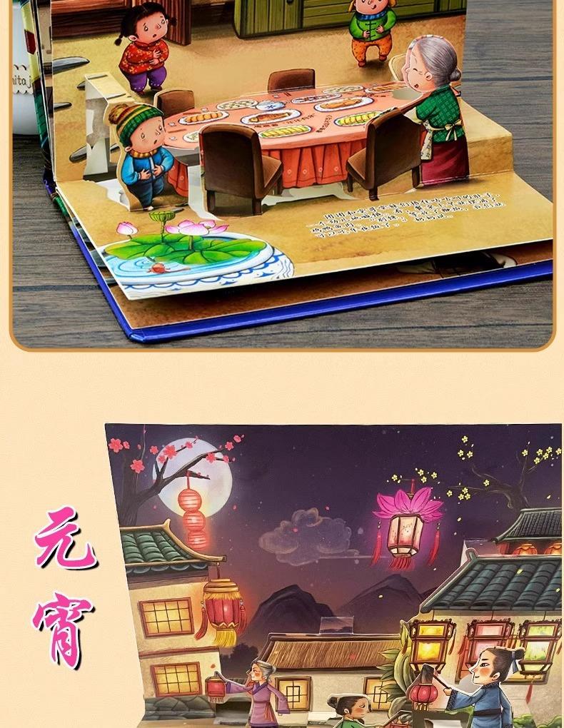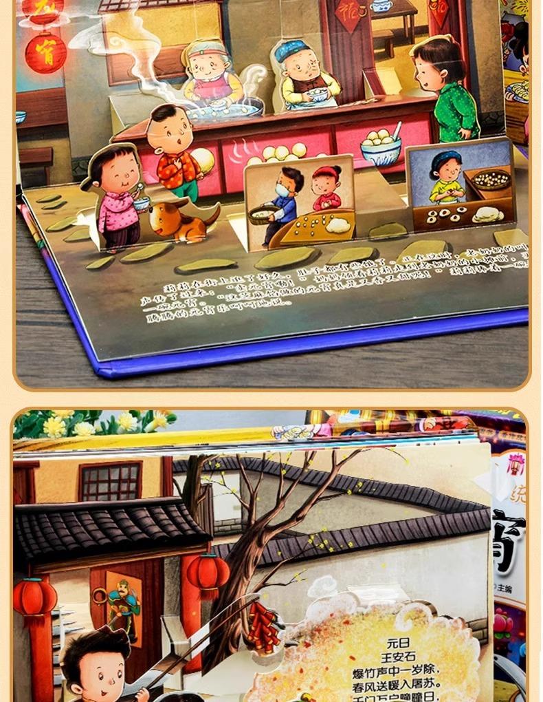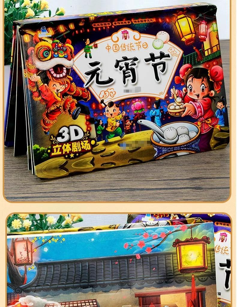 Los 2 volúmenes del Festival de los Faroles del Festival de Primavera, libro desplegable en 3D para niños, libro ilustrado, libro de cuentos, historia del festival tradicional chino