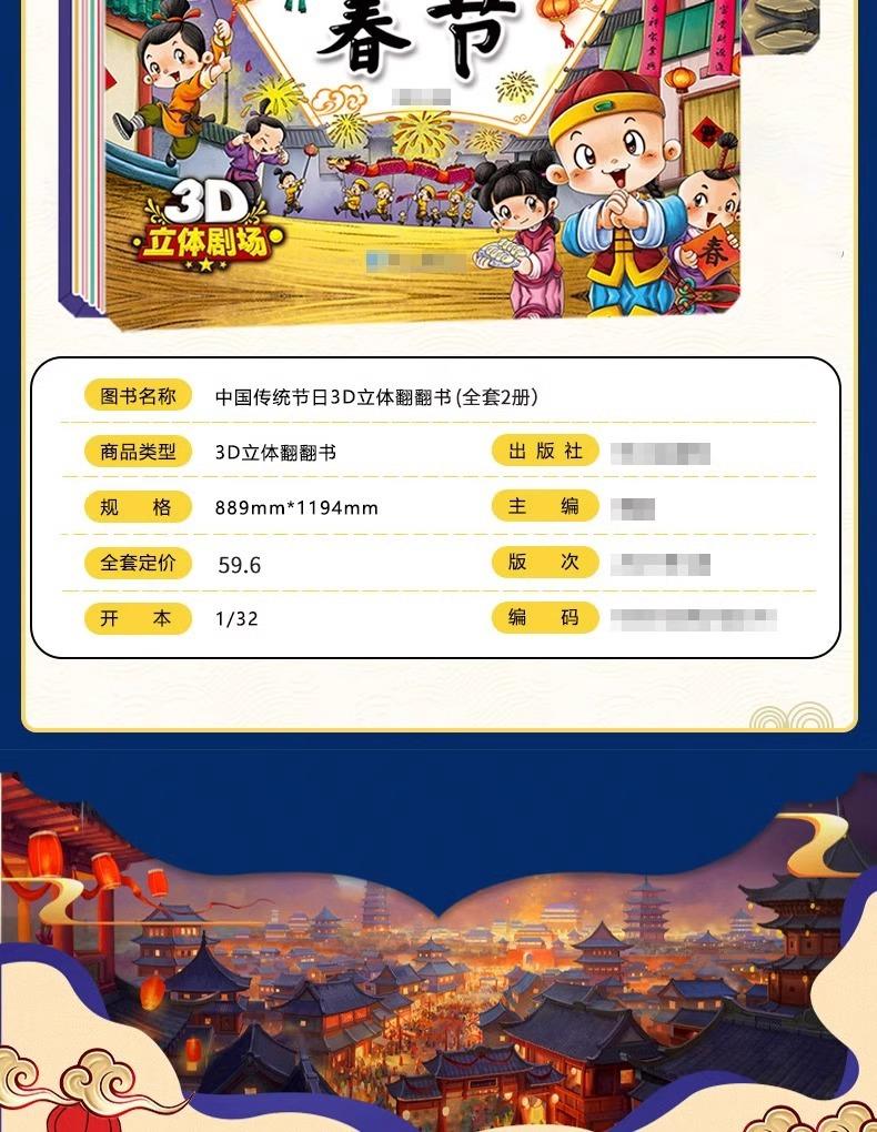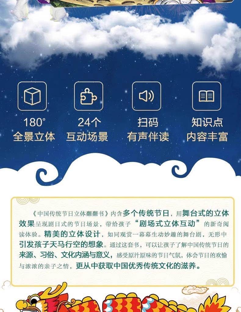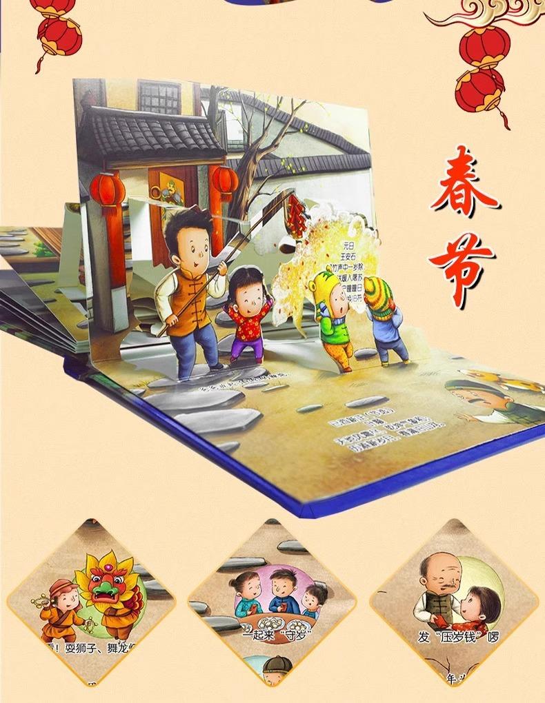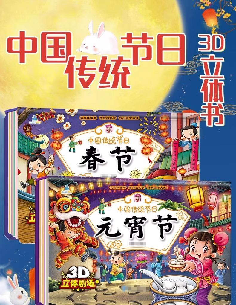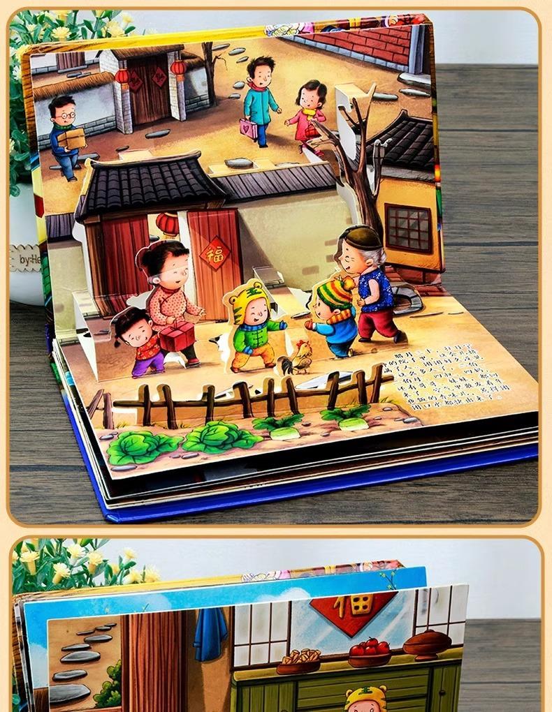 Los 2 volúmenes del Festival de los Faroles del Festival de Primavera, libro desplegable en 3D para niños, libro ilustrado, libro de cuentos, historia del festival tradicional chino