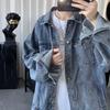 604 Abrigo de mezclilla para hombre, estilo coreano, moderno, otoño, holgado, elegante, informal, combinable, chaqueta de mezclilla lavada vintage