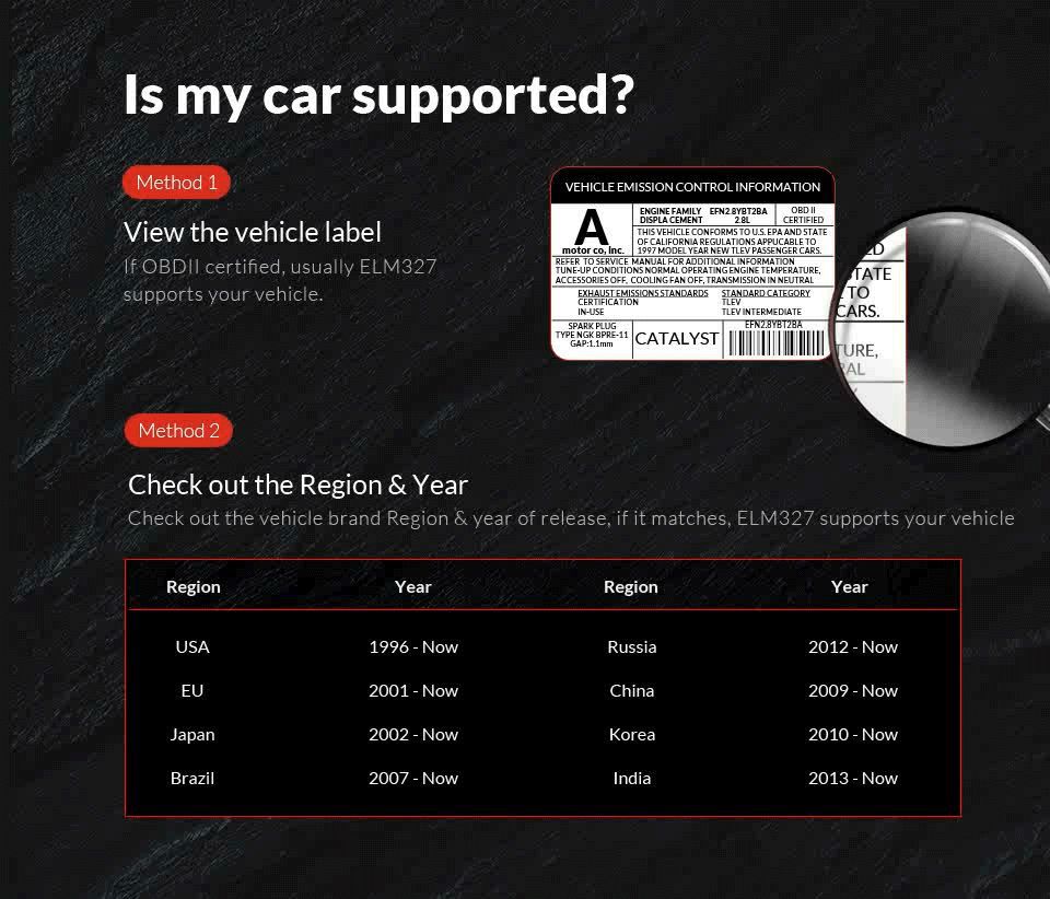 Este elm327 usualmente puede funcionar en la mayoría de los autos nuevos con Adaptador OBD de 16 pines y motor de 12V: