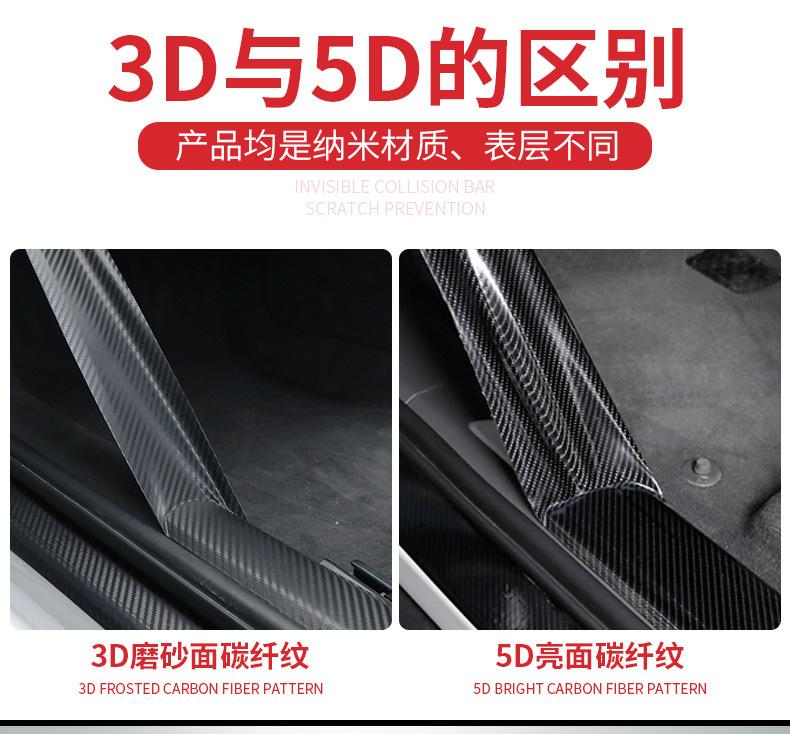 Barra de umbral de coche K3D de fibra de carbono con grano para puerta, barra anticolisión, pegatina para umbral de coche, pegatina antipisones, pegatina anticolisión para maletero trasero