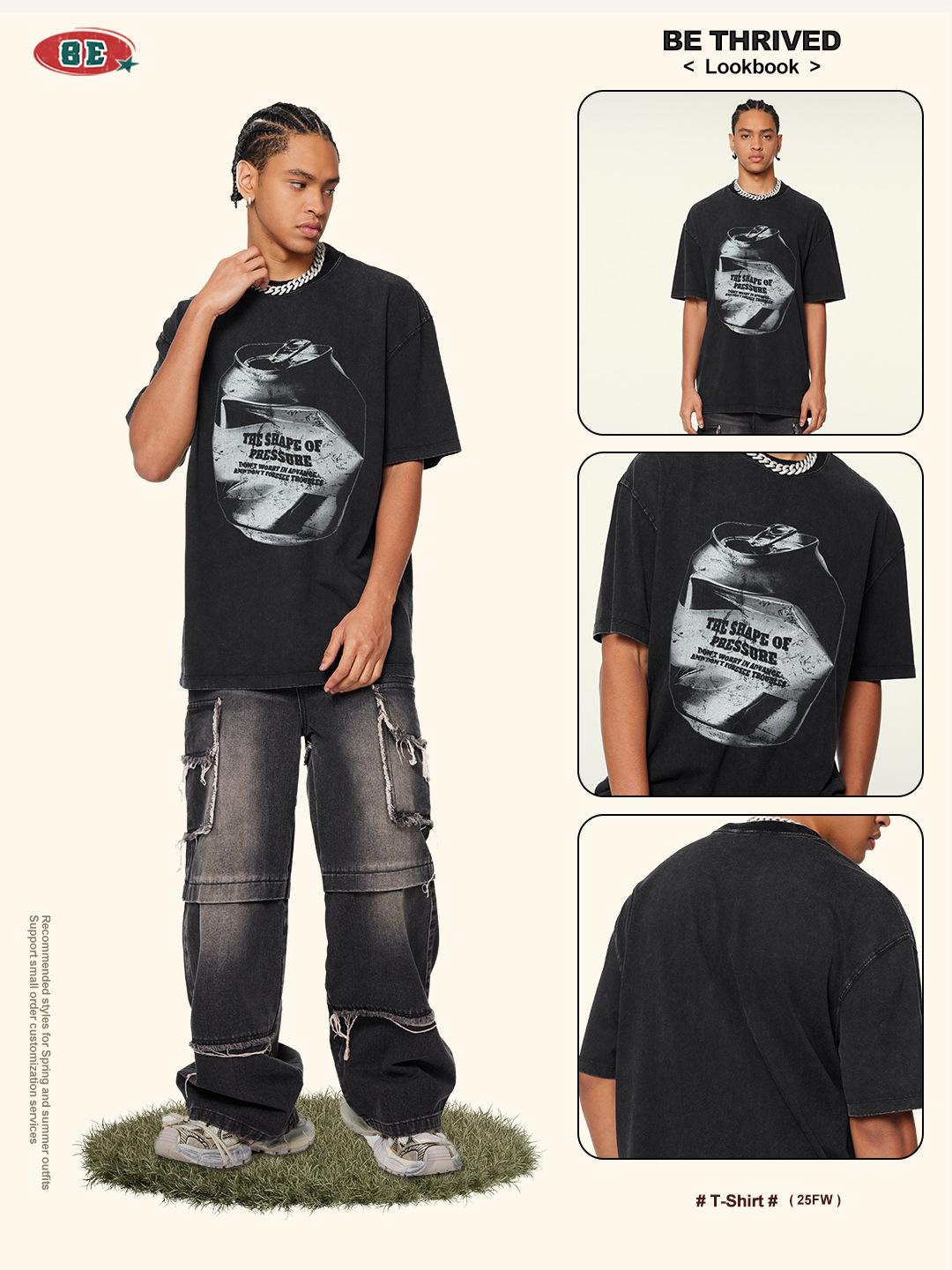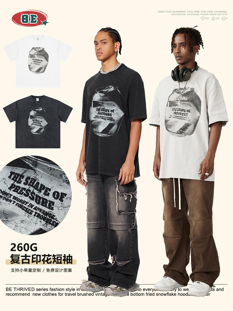 Compra Ropa para Hombre | Verano 2025 Marca Americana de Moda Slogan Estampado Algodón Oversize Pesada Holgada Manga Corta Camiseta para Hombre al por mayor en Joom.pro