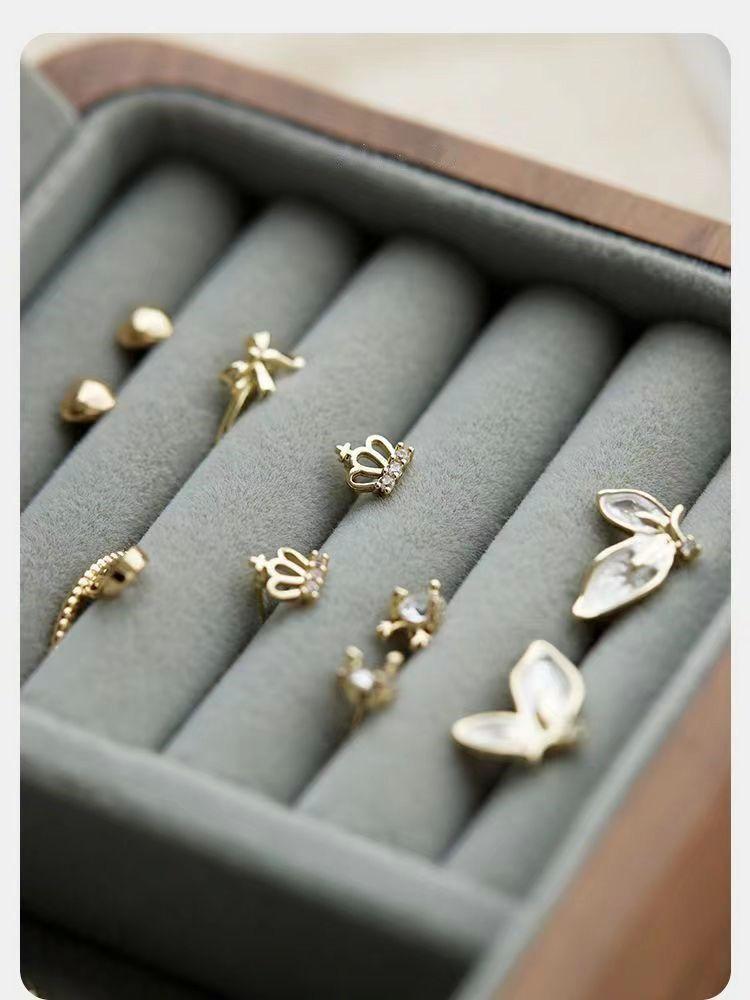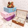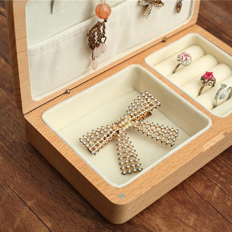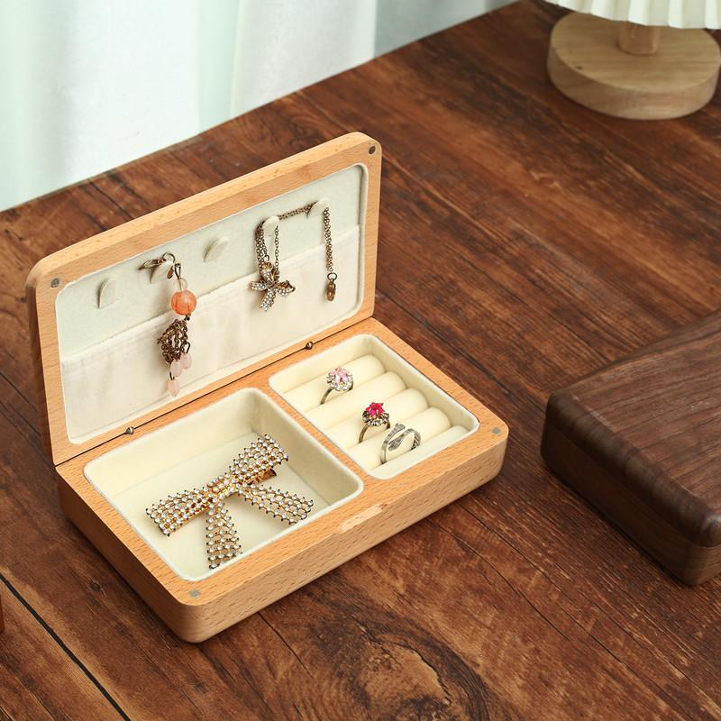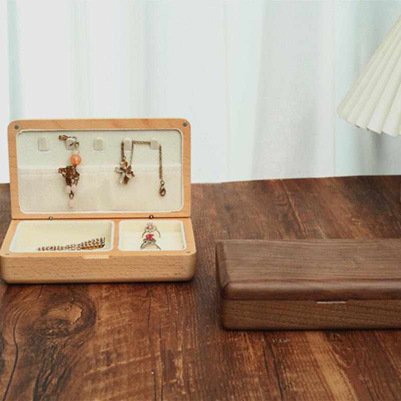 Caja de Joyería de Nogal Caja de Almacenamiento de Joyería para Collares de Madera Maciza Portátil Tres Oro Estilo Chino Nuevo Caja de Joyería Pequeña Caja de Joyería