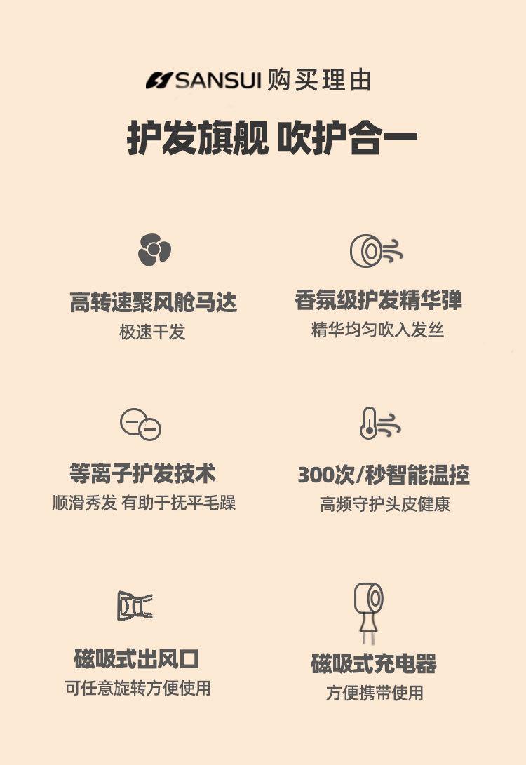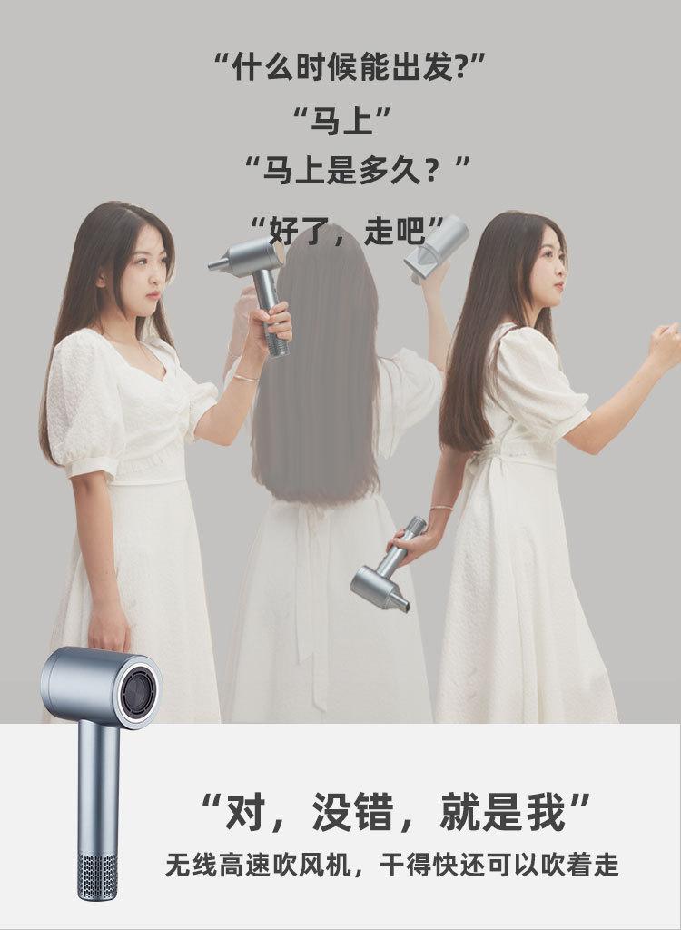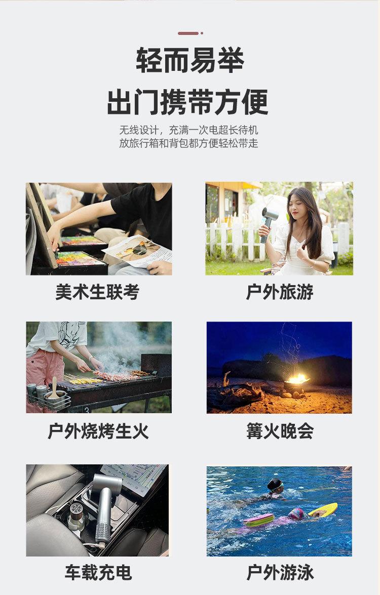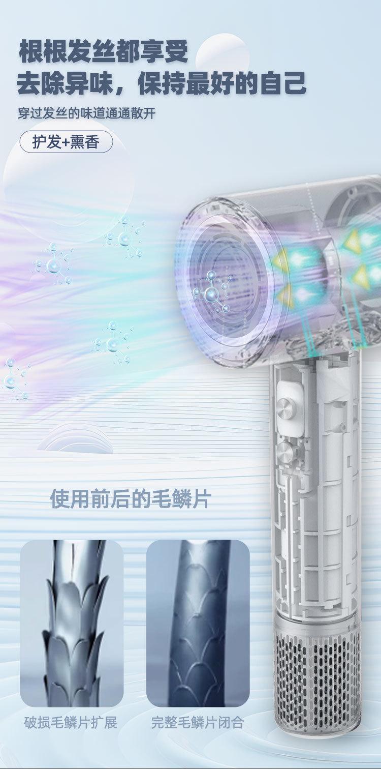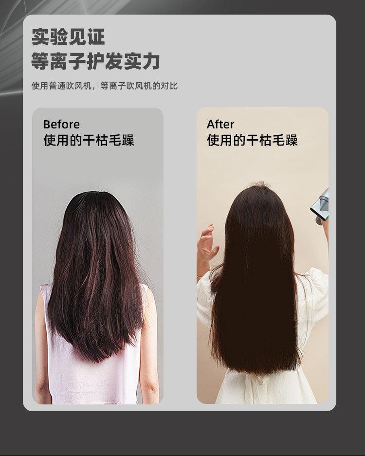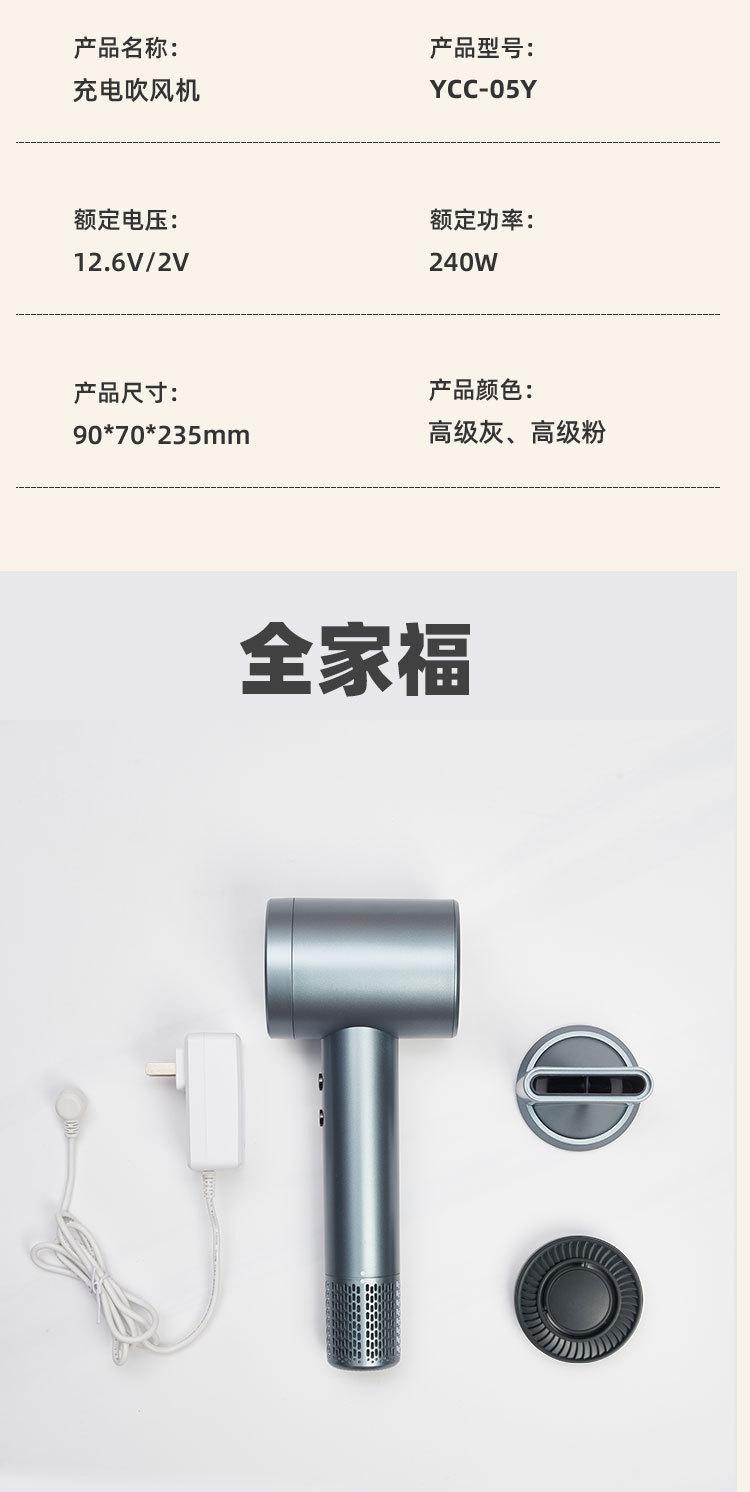 Engranaje de viento frío 1 (viento frío), velocidad 45000 rpm, descarga continua durante aproximadamente 130 minutos; engranaje de viento frío 2 (viento frío), velocidad 95000 rpm, descarga continua durante aproximadamente 80 minutos; 3. Engranaje de viento caliente 1 (viento caliente 50℃), velocidad 45000 rpm, potencia 240w, descarga continua durante aproximadamente 12 minutos; 4. Engranaje de viento caliente 2 (viento cálido 40℃), velocidad 95000 rpm, descarga continua durante aproximadamente 12 minutos