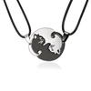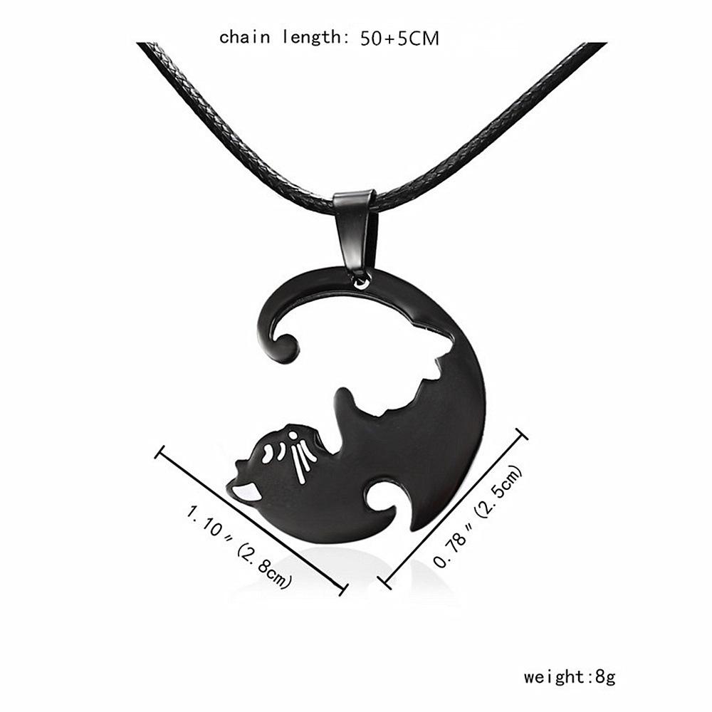 Peach heart Black White Cat couple necklace, Peach heart Golden White Cat couple necklace, Black and White lov...