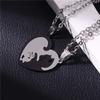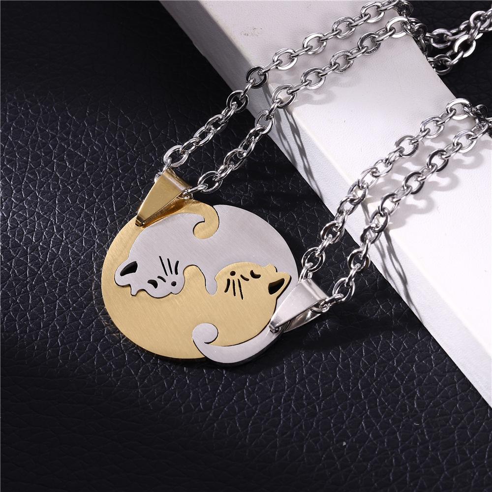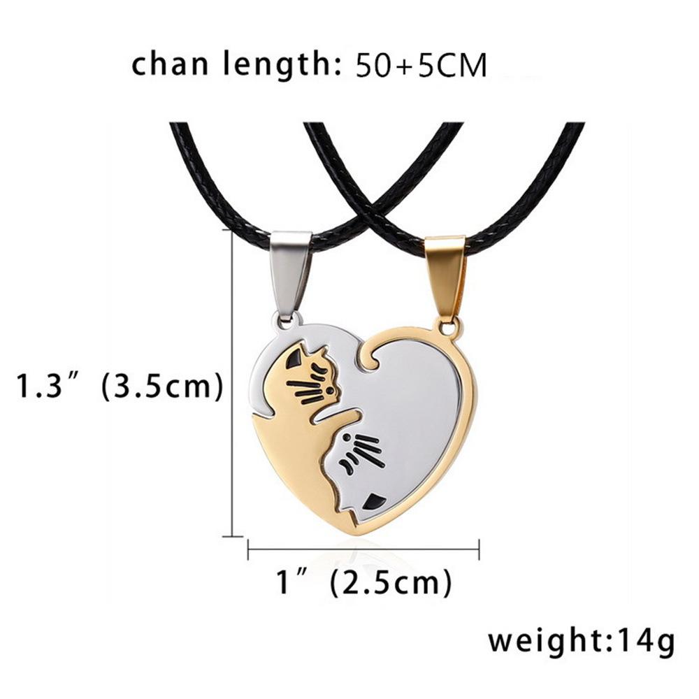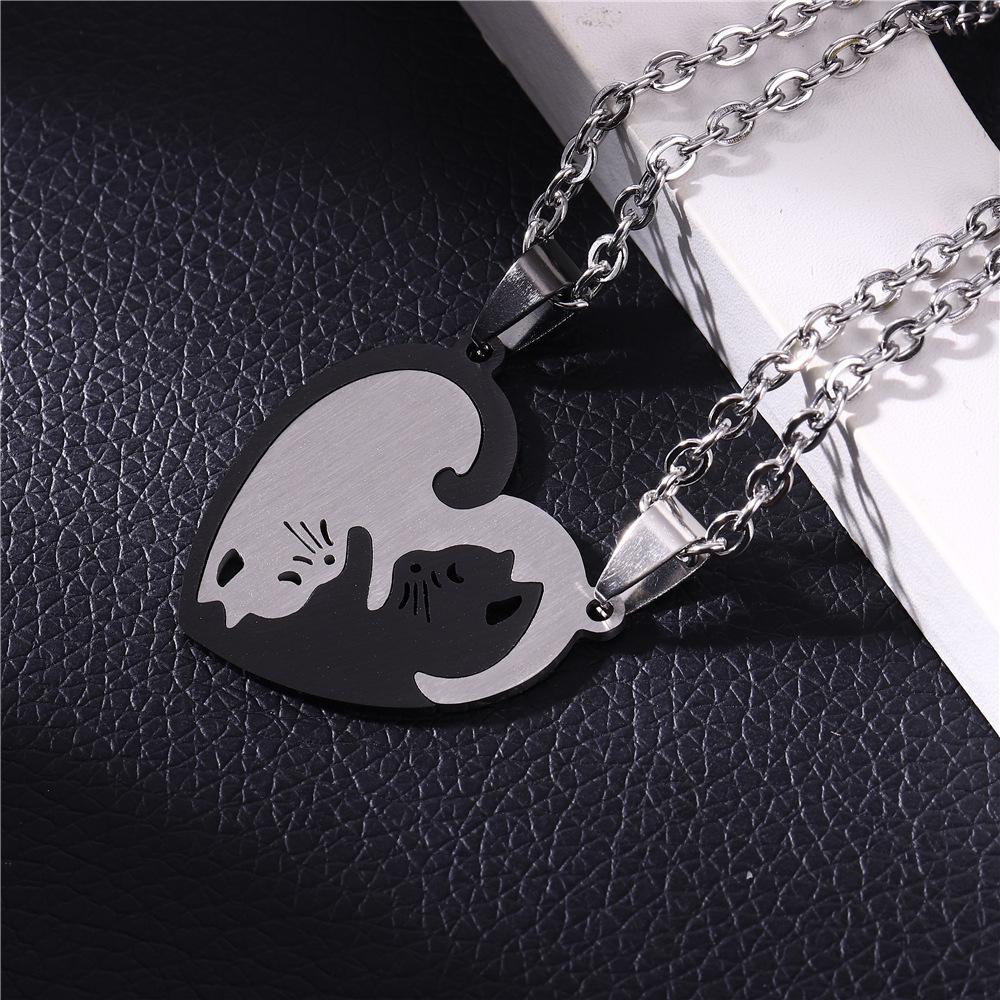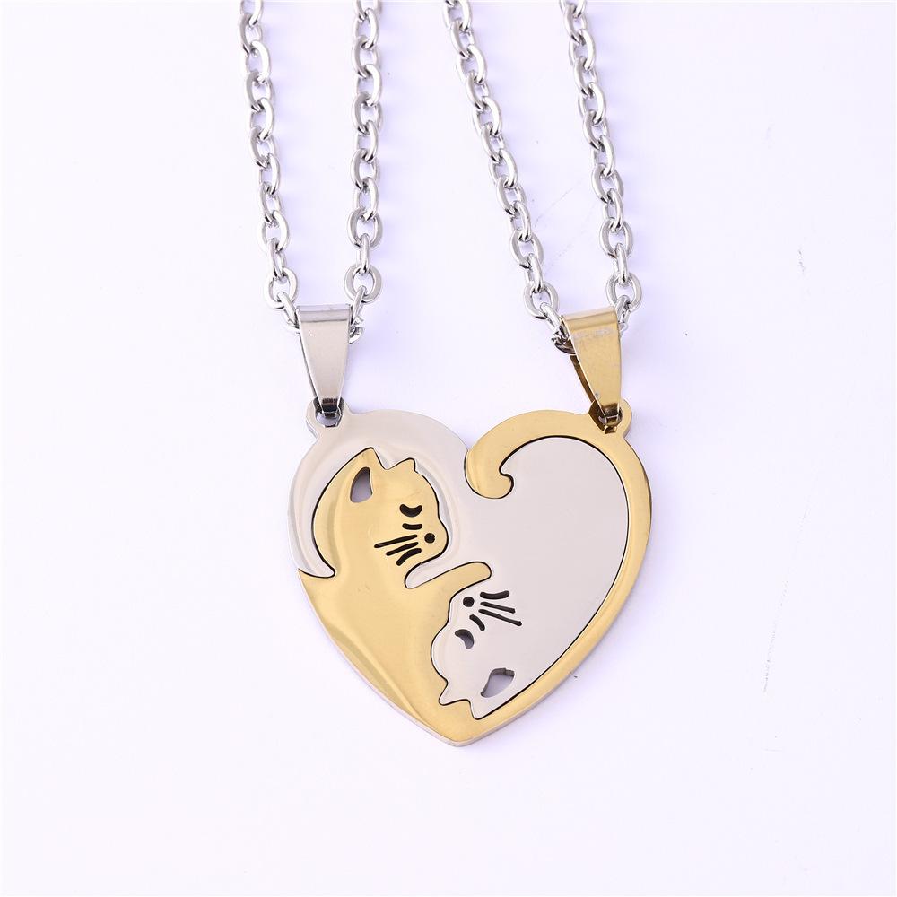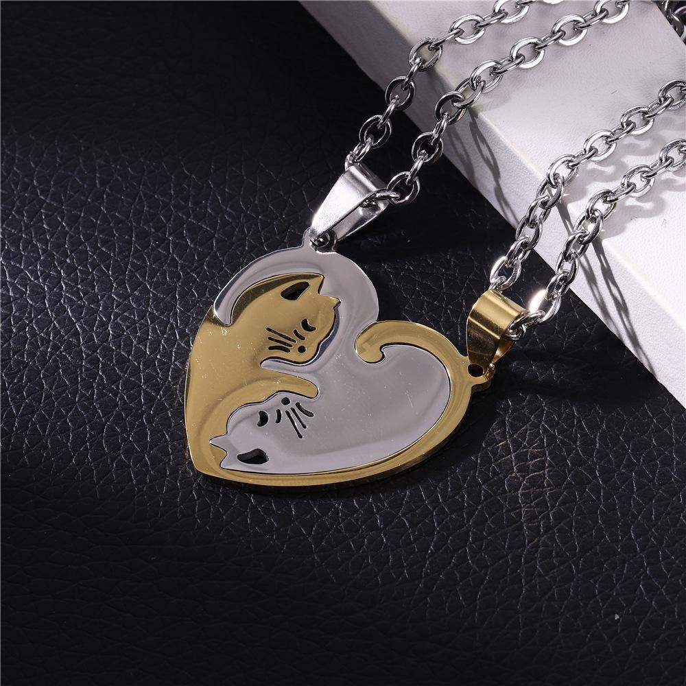 Colgante creativo de acero inoxidable con forma de corazón de gatito, accesorio para pareja, collar con costuras de gato y amor