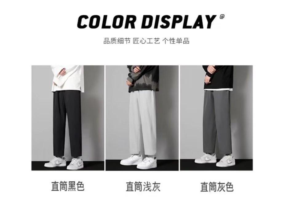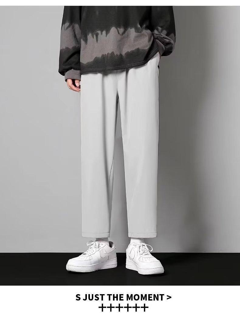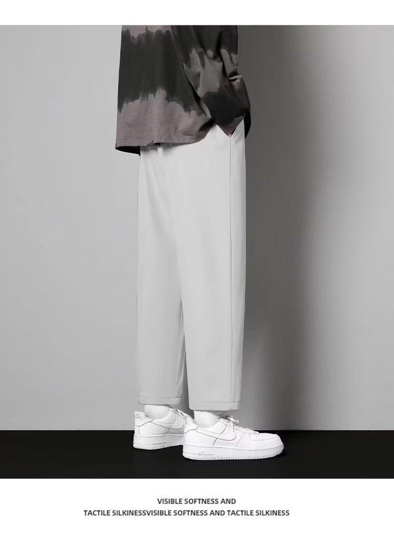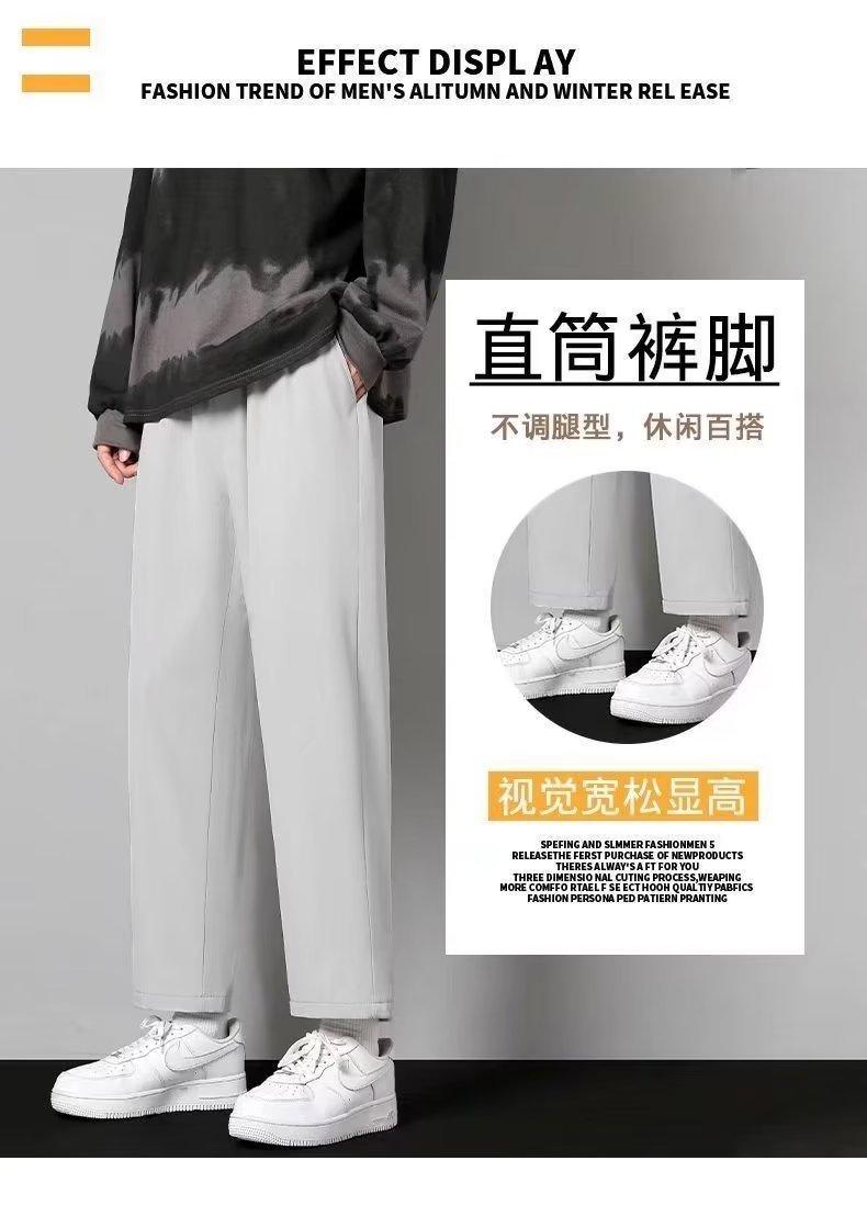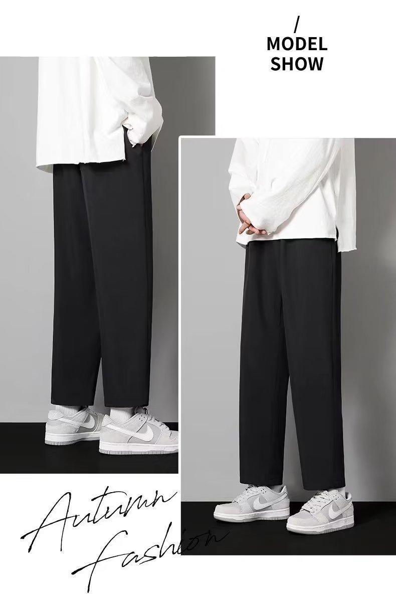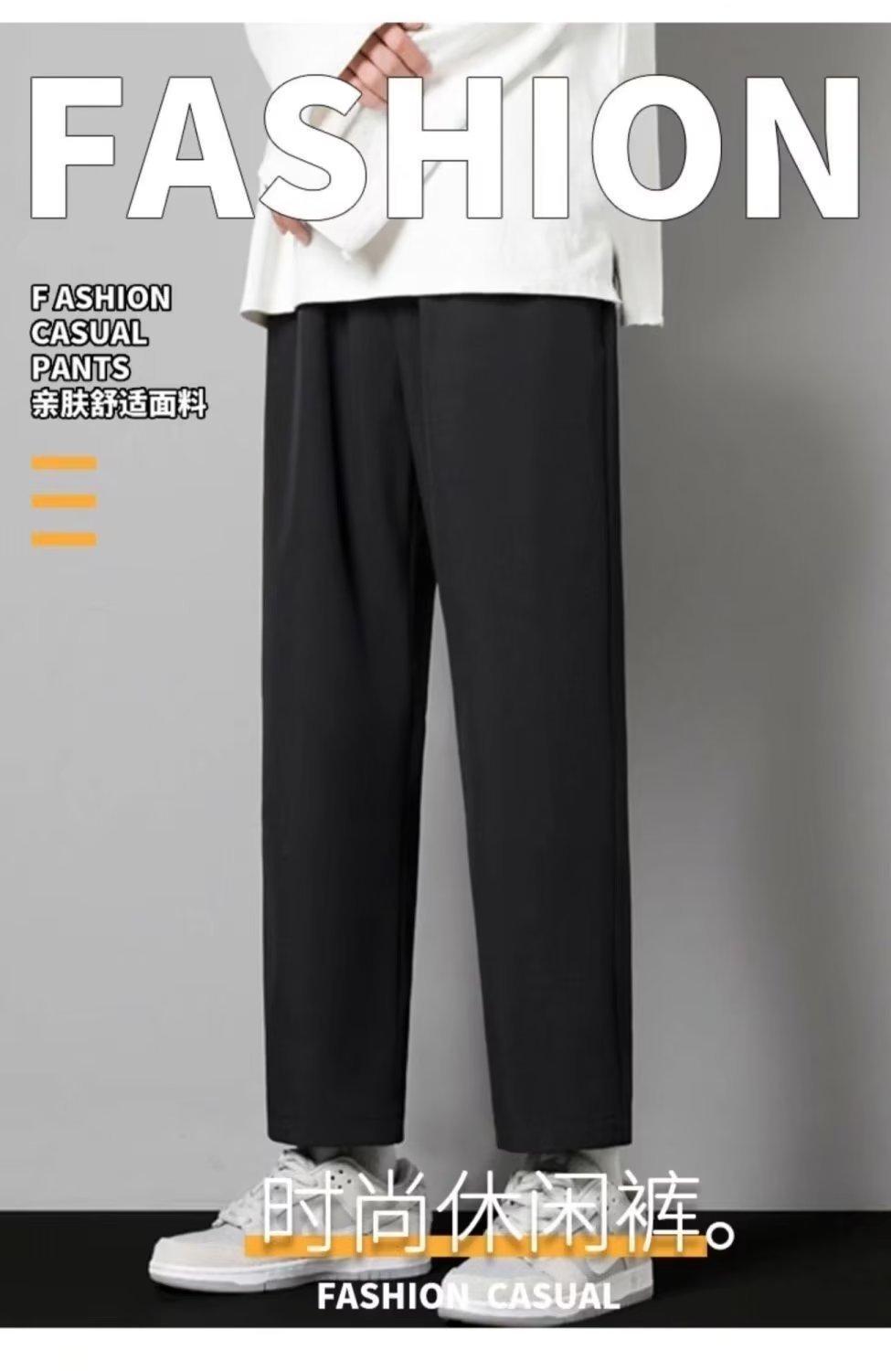 Pantalones rectos de seda de hielo de verano para hombre, pantalones holgados y combinables, pantalones deportivos casuales de pierna ancha populares para primavera y primavera.