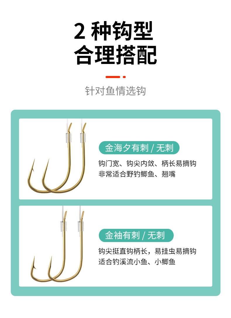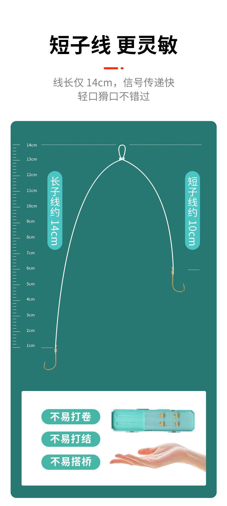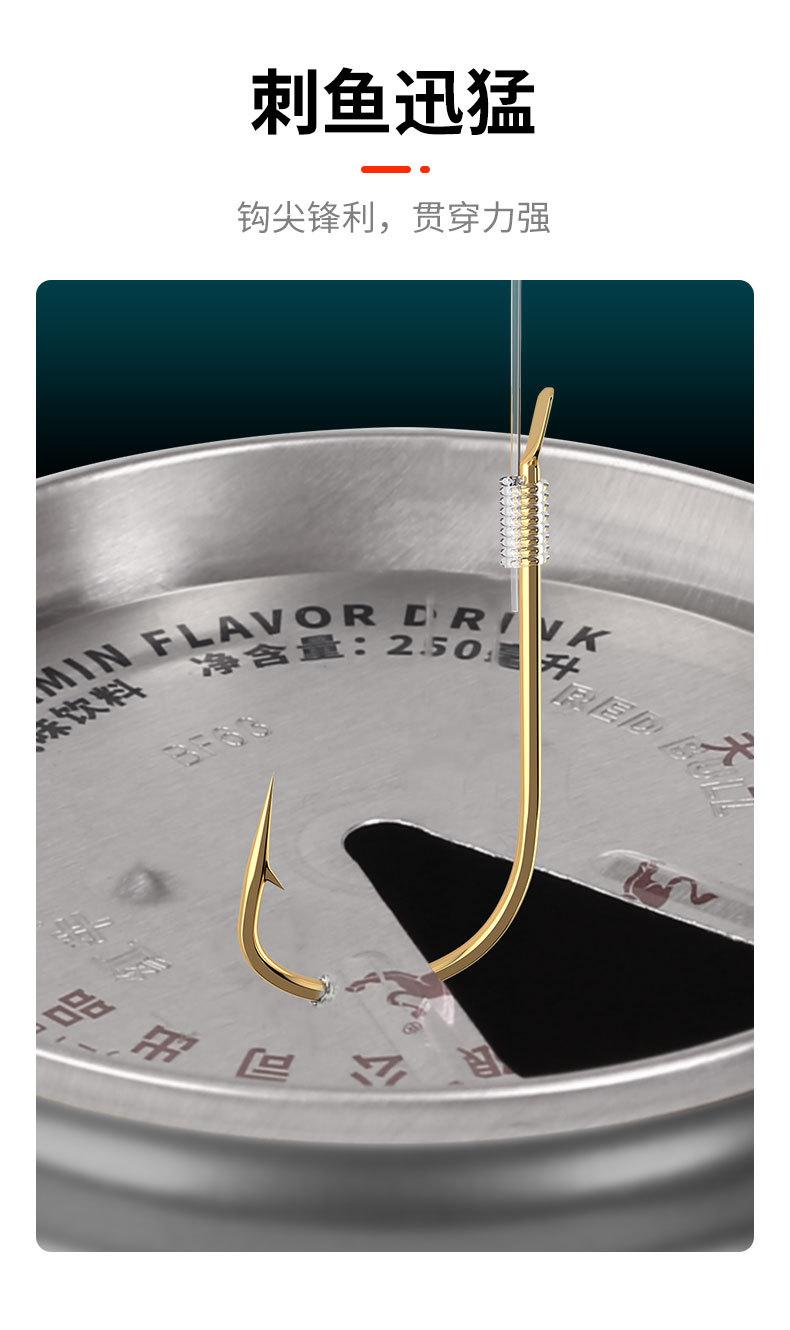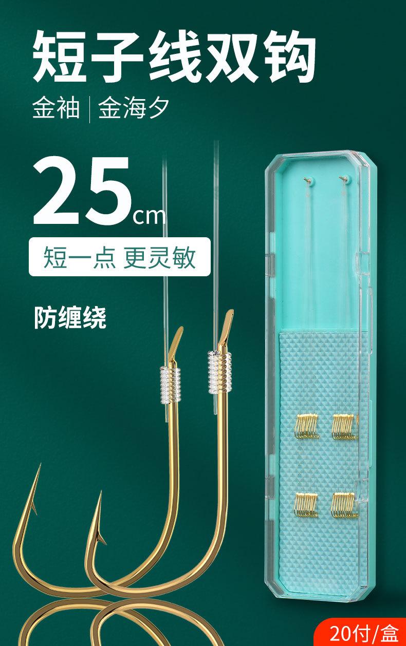 Líder Corto Doble Anzuelo Terminado Manga Dorada Anzuelo de Pesca Atado Genuino Pesca Salvaje Carpa Crucian Mar Noche Anzuelo Plegable Juego Anti-Enredos