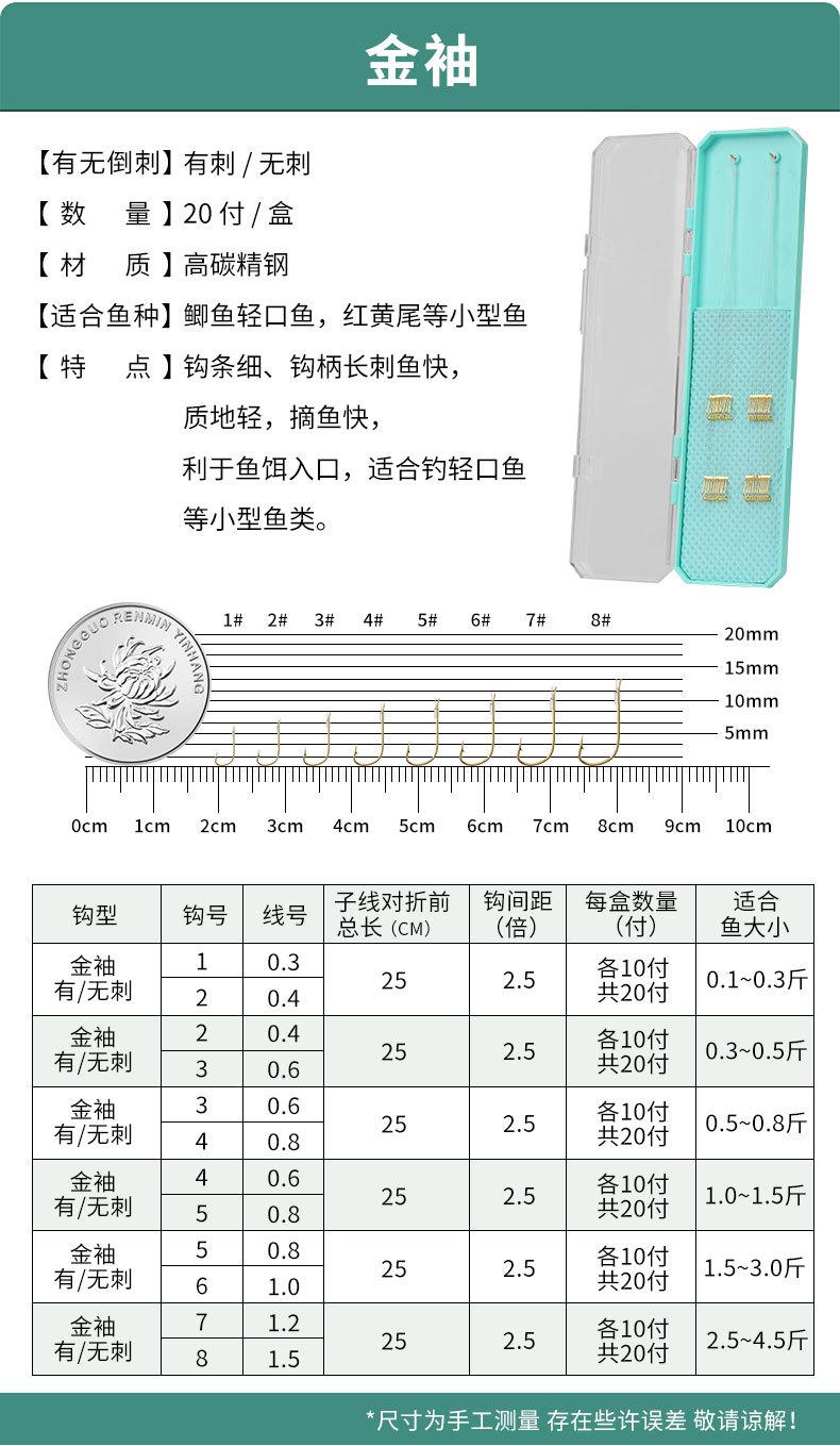 Gold sleeve with thorns 25cm [No. 1 0.3# No. 2 0.4#]#], Golden sleeve with thorns 25cm [No. 2 0.4# No. 3 0.6#]...