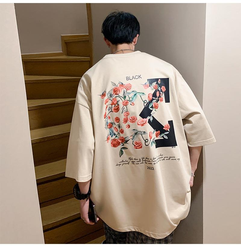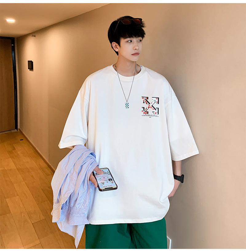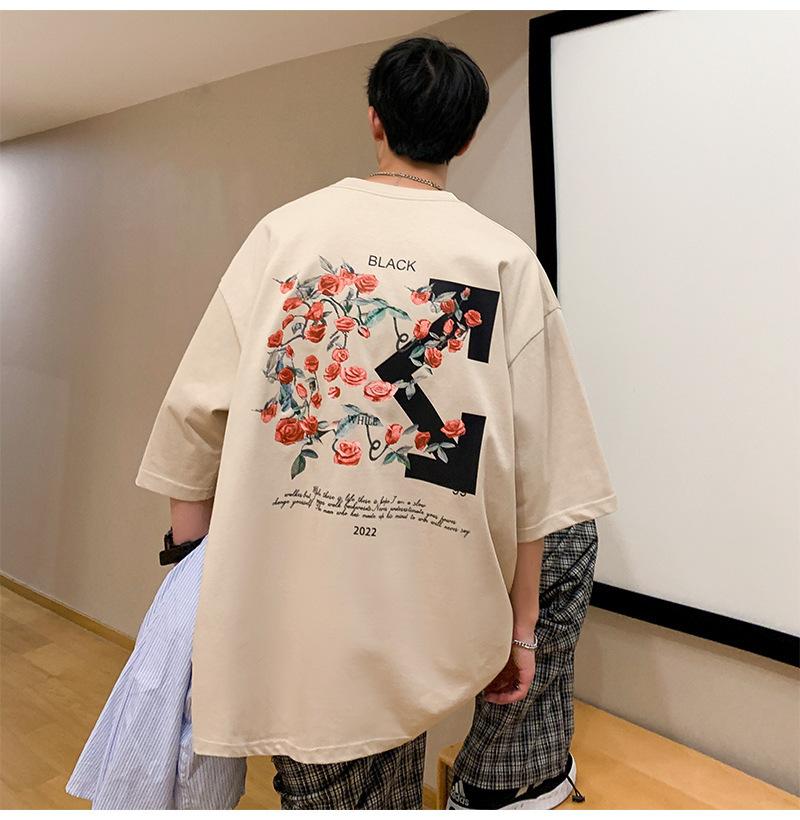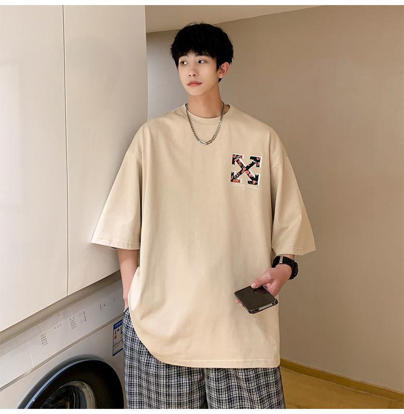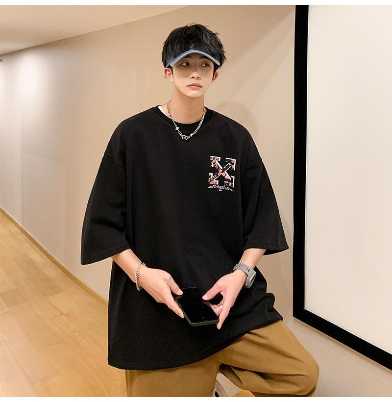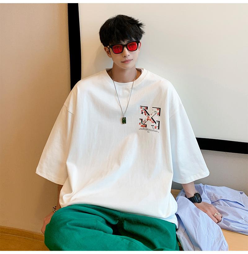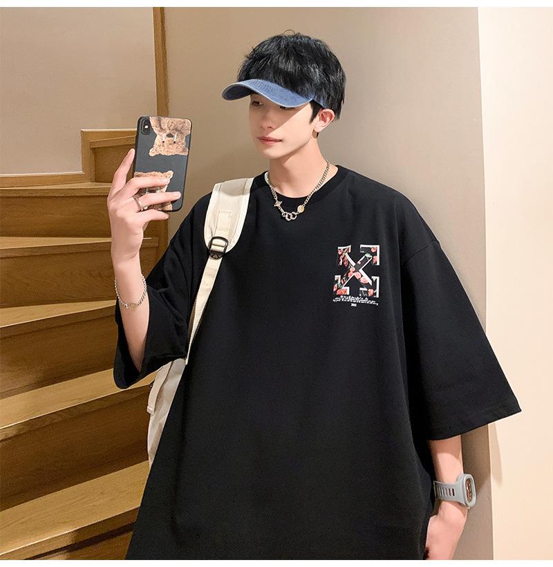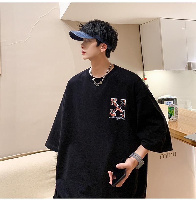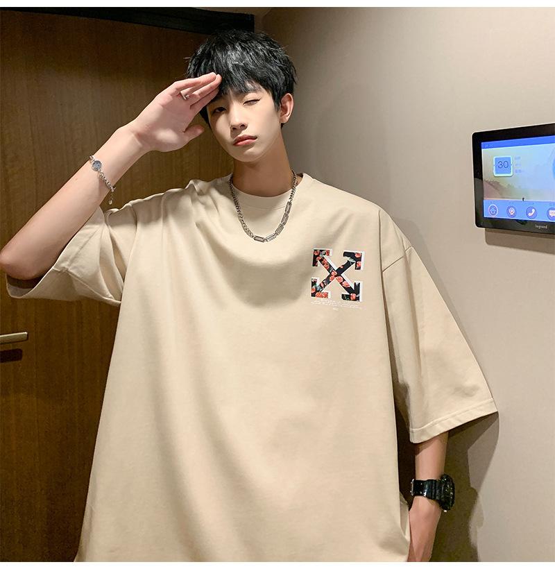 Camiseta gruesa de manga corta para hombre, marca de moda, con estampado de varias combinaciones, ropa de media manga, camiseta vintage de verano de moda nacional.
