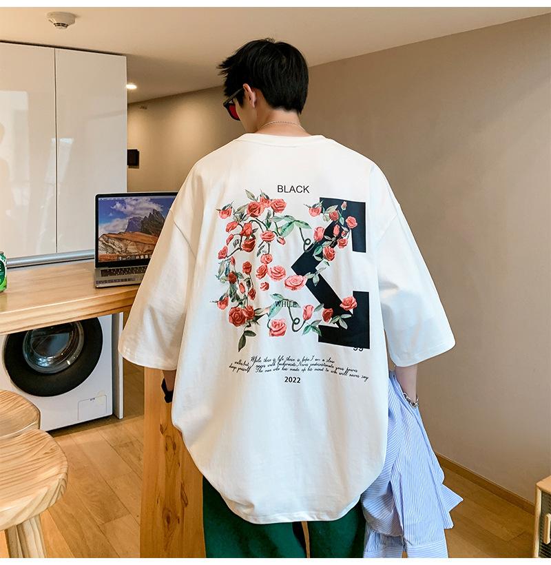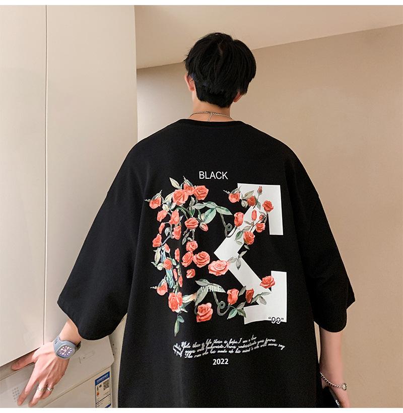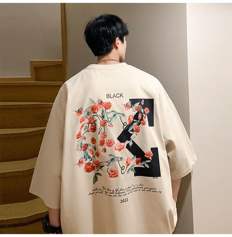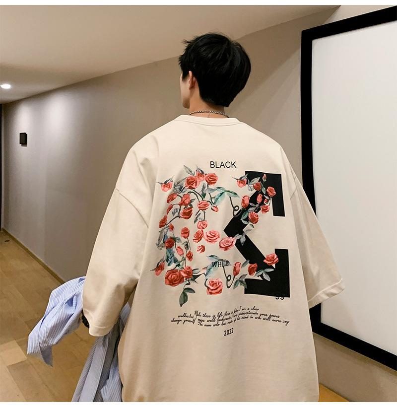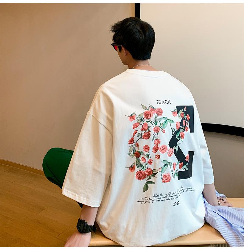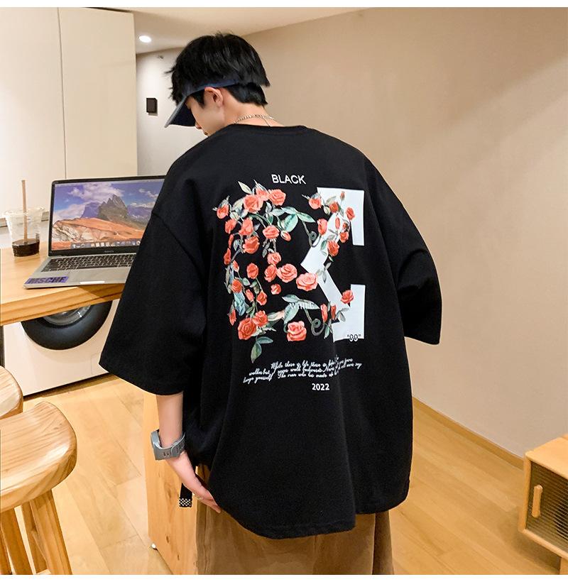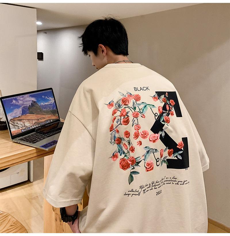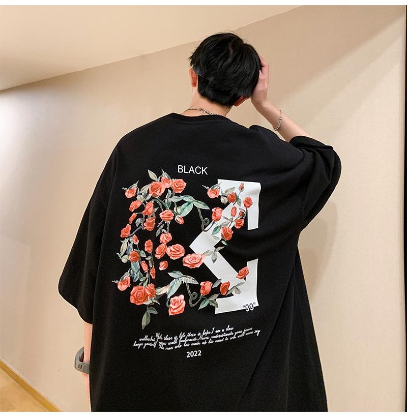 Camiseta gruesa de manga corta para hombre, marca de moda, con estampado de varias combinaciones, ropa de media manga, camiseta vintage de verano de moda nacional.