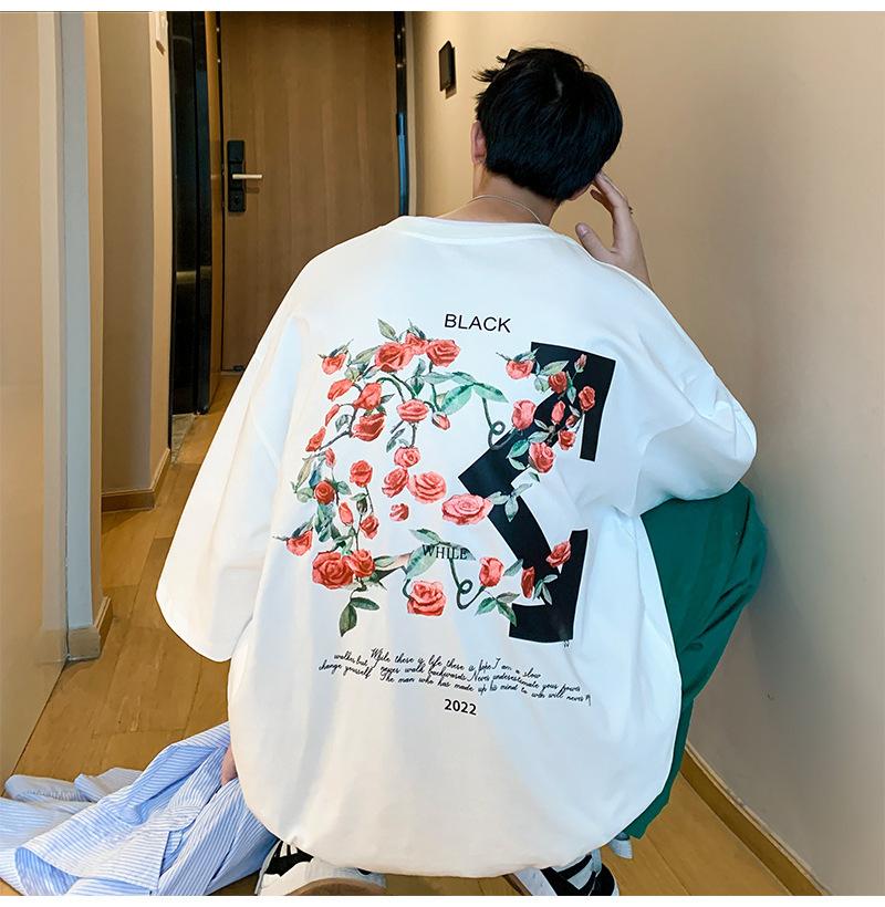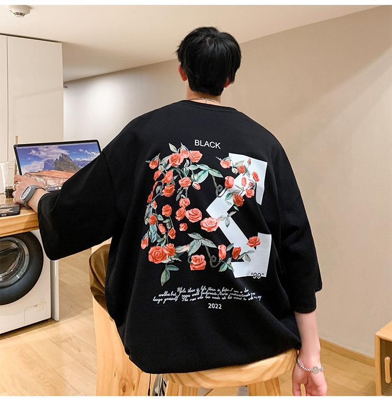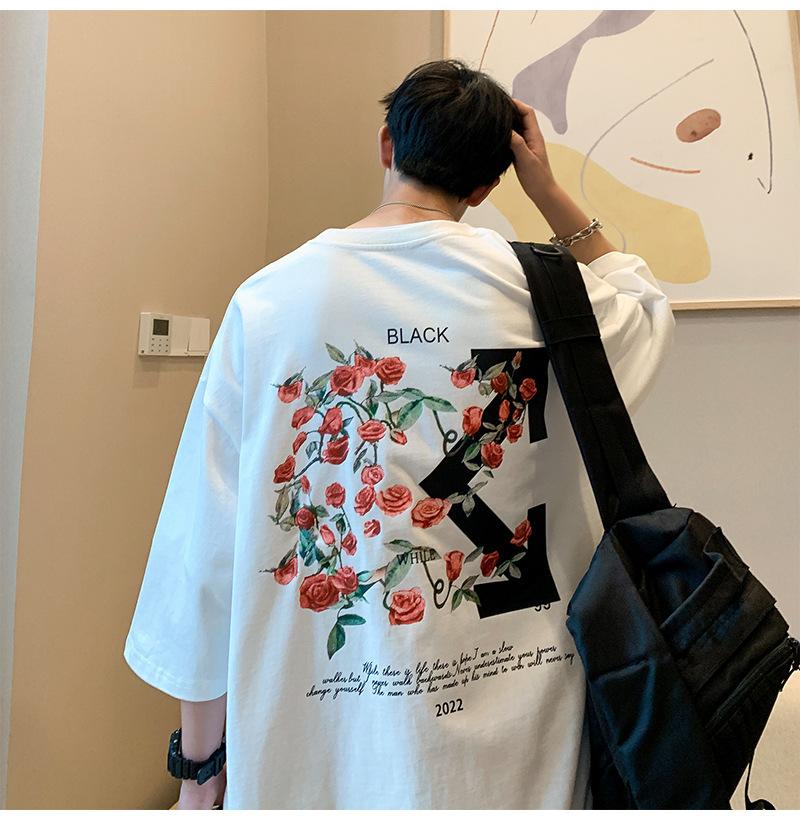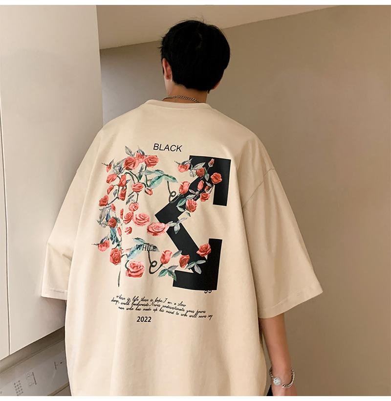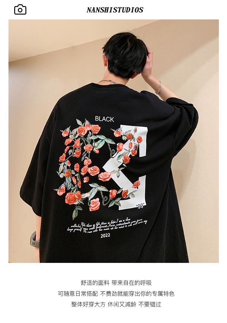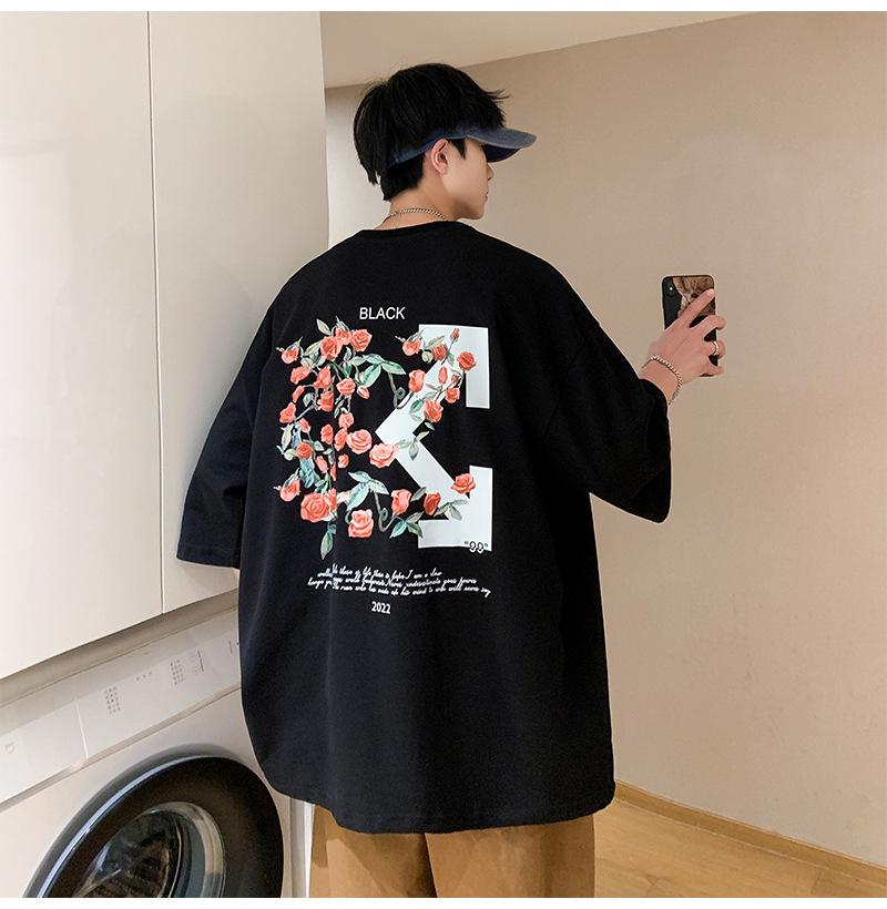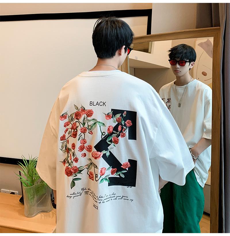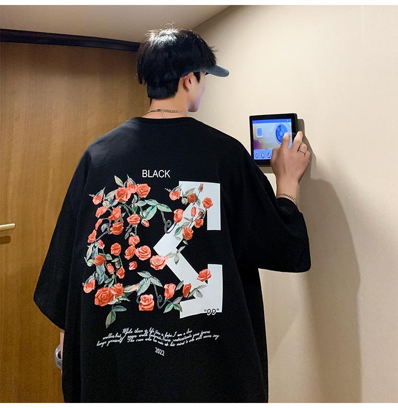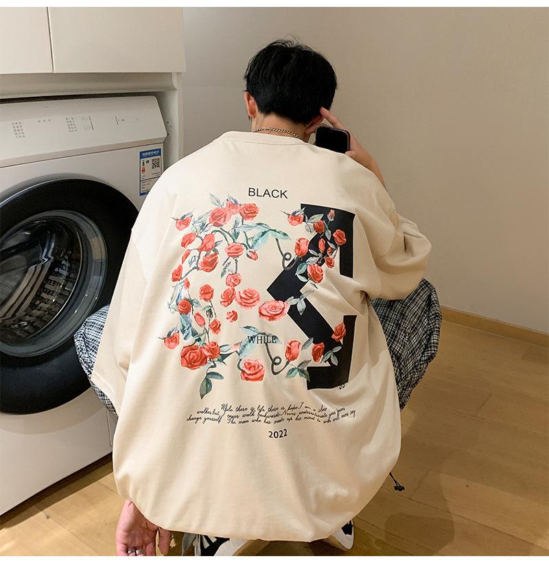 Camiseta gruesa de manga corta para hombre, marca de moda, con estampado de varias combinaciones, ropa de media manga, camiseta vintage de verano de moda nacional.