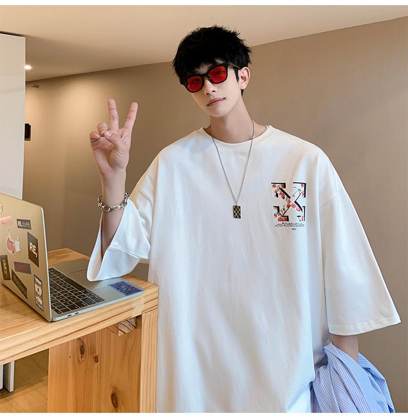 Compra Camiseta gruesa de manga corta para hombre, marca de moda, con estampado de varias combinaciones, ropa de media manga, camiseta vintage de verano de moda nacional. al por mayor en Joom.pro
