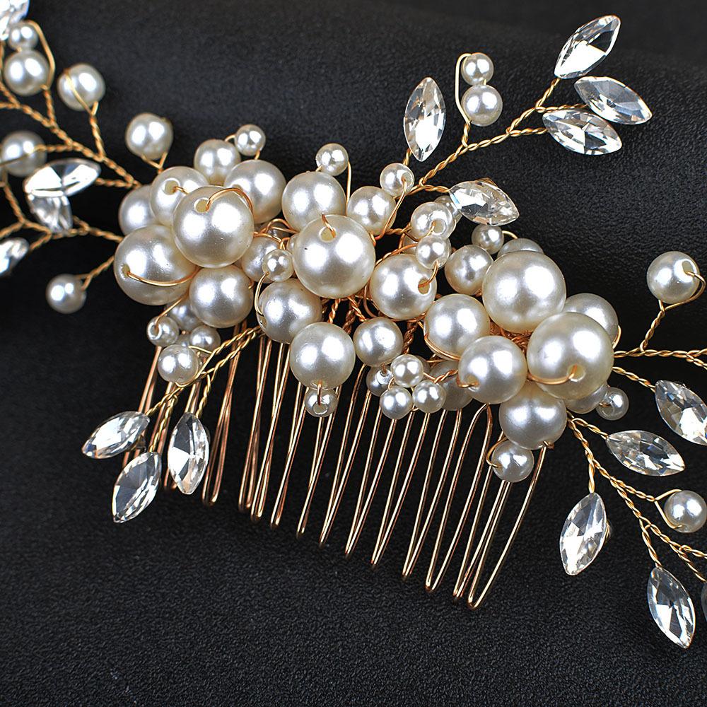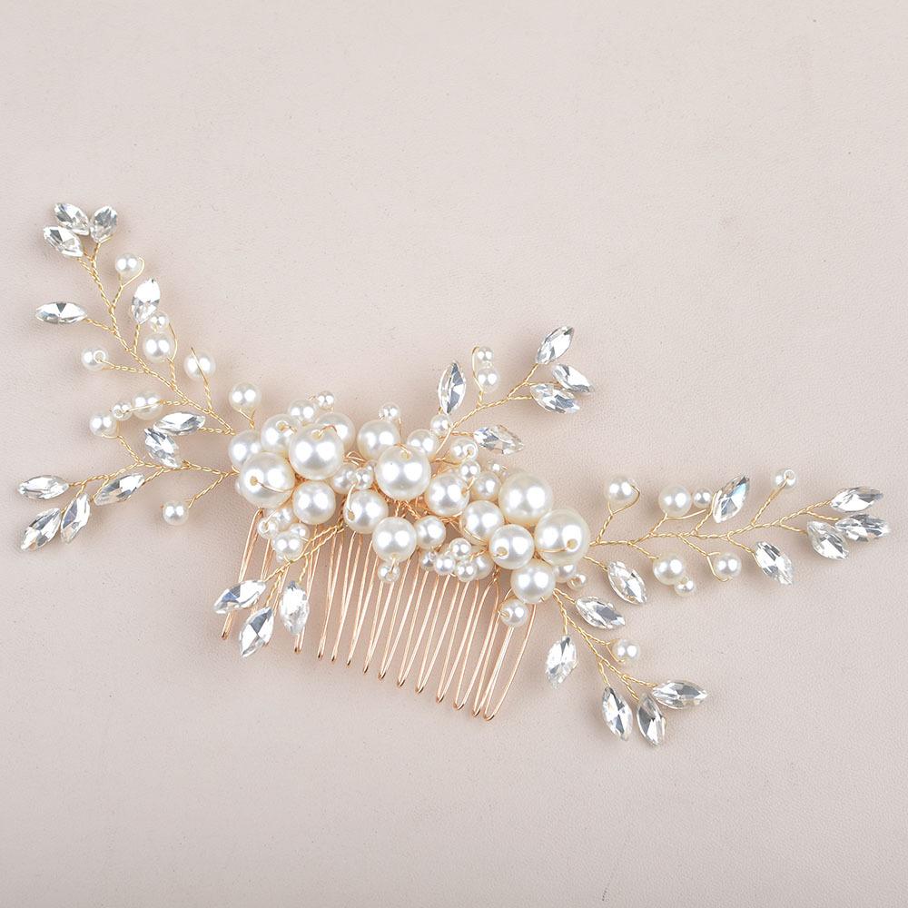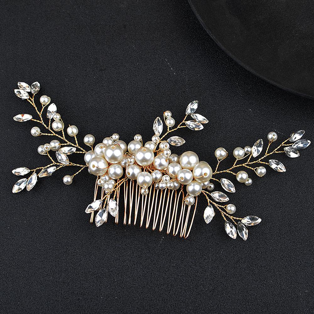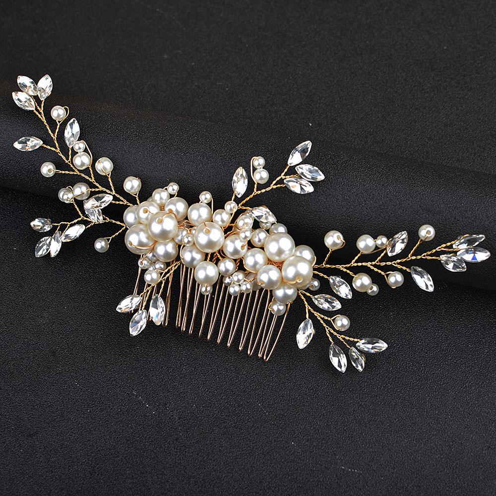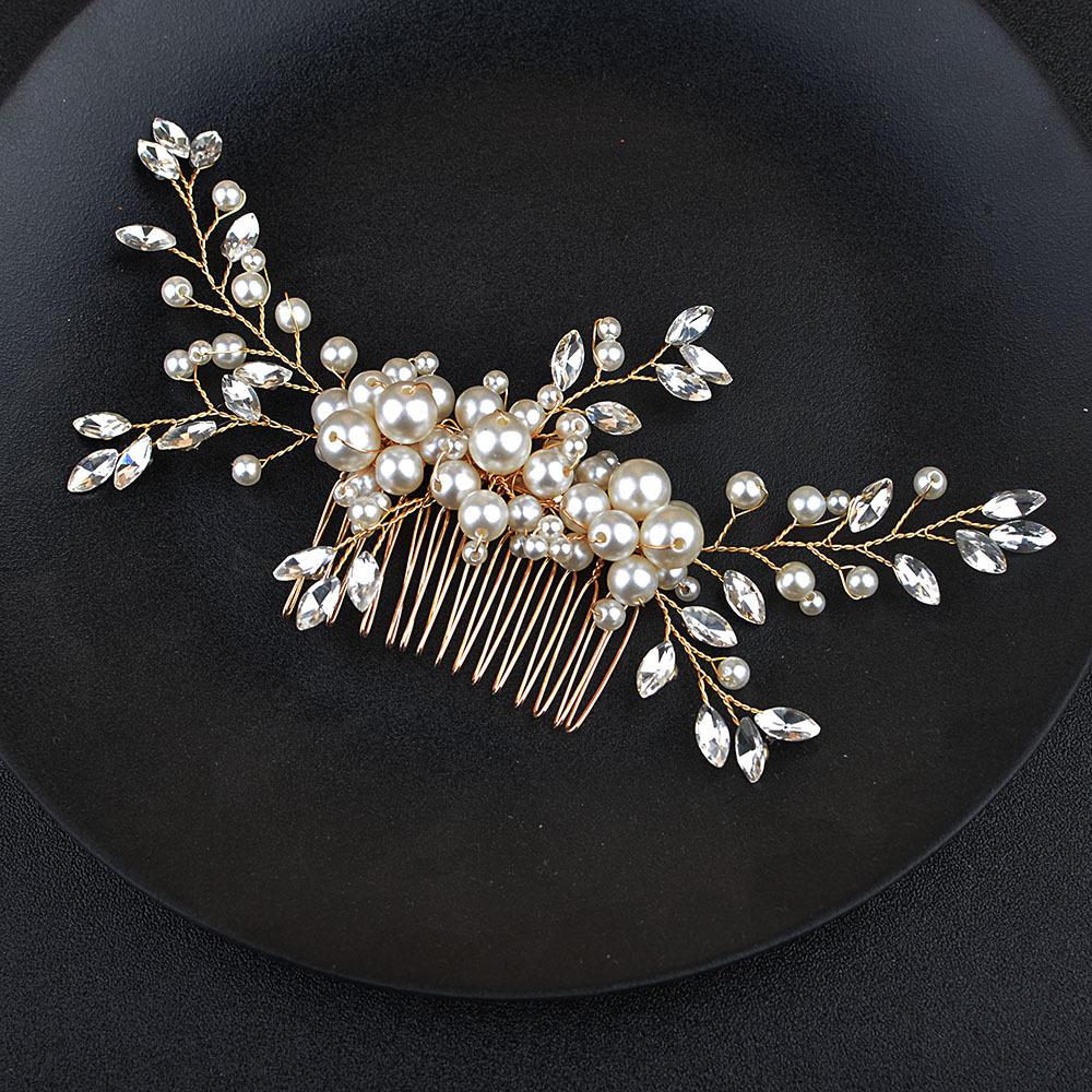 Accesorios para el cabello de novia para boda, hechos a mano, con flor de perla y diamantes incrustados, peine para el cabello, popular tocado transfronterizo de eBay.
