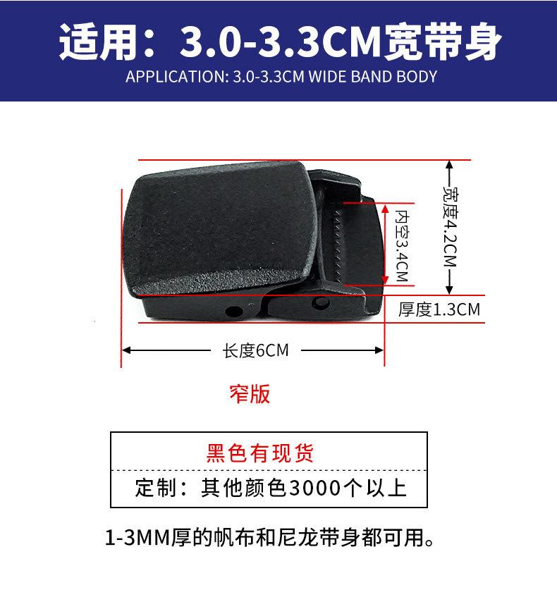 Hebilla de resina YKK hebilla plana de acero plástico cinturón metálico puede pasar por la puerta de seguridad hebilla de plástico venta al por mayor al contado WB30DA2